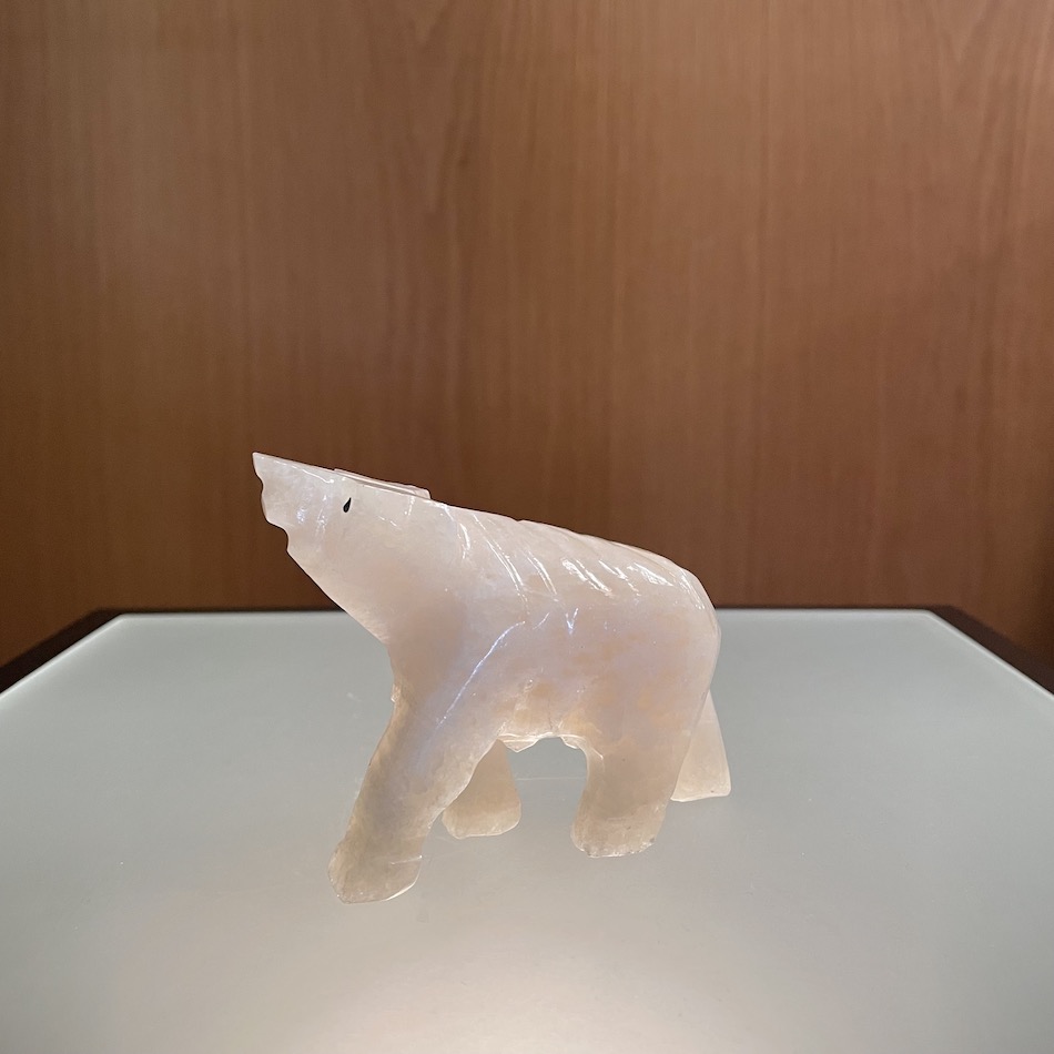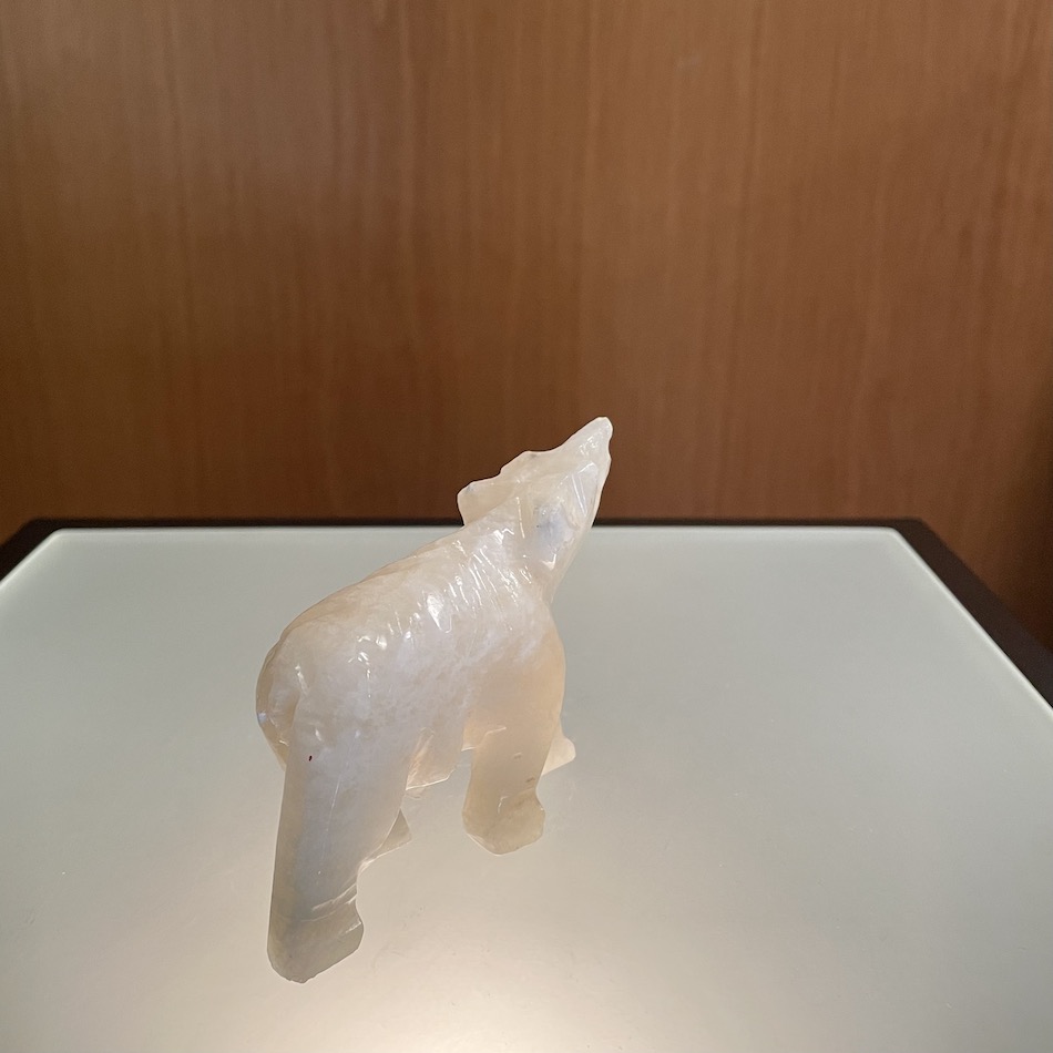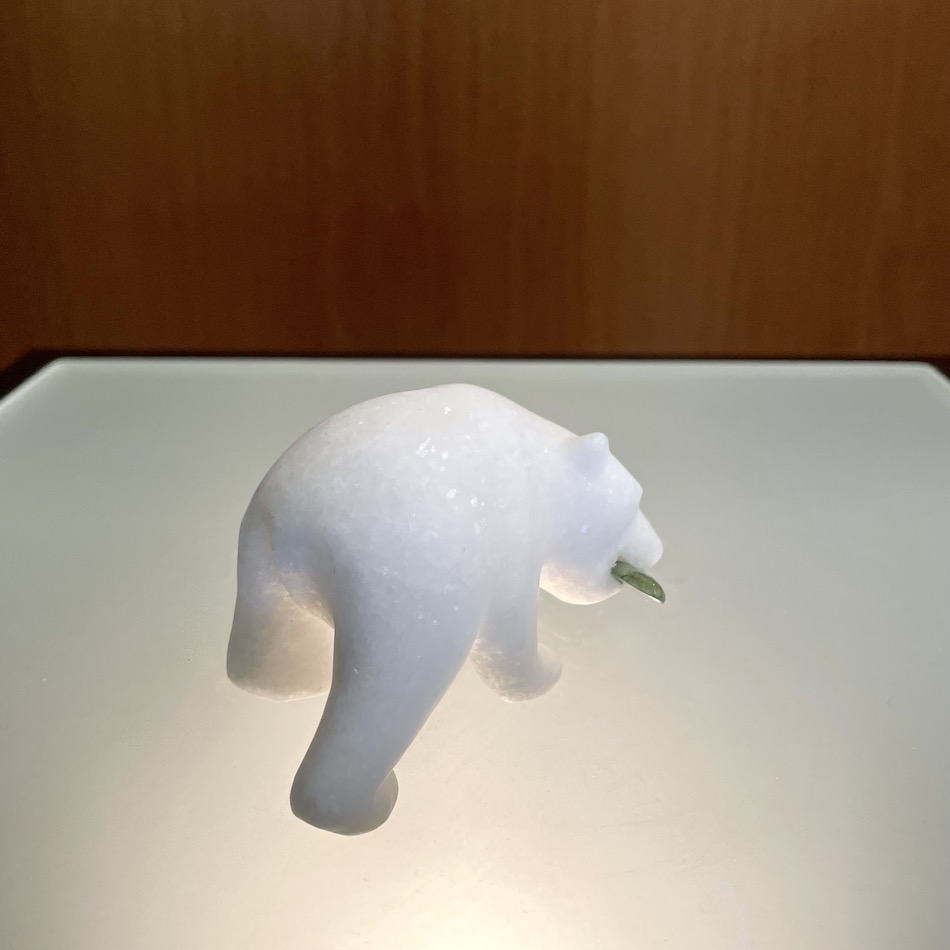 カナディアンアラバスターの白く艶のある質感を活かし、ざっくりと削って造形したポーラーベアーフィギュア
