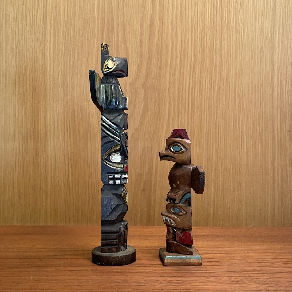 北米ネイティブのスーべニールとして定番だったトーテムポール、天然木に丁寧な彫刻とペイントはヴィンテージならでは