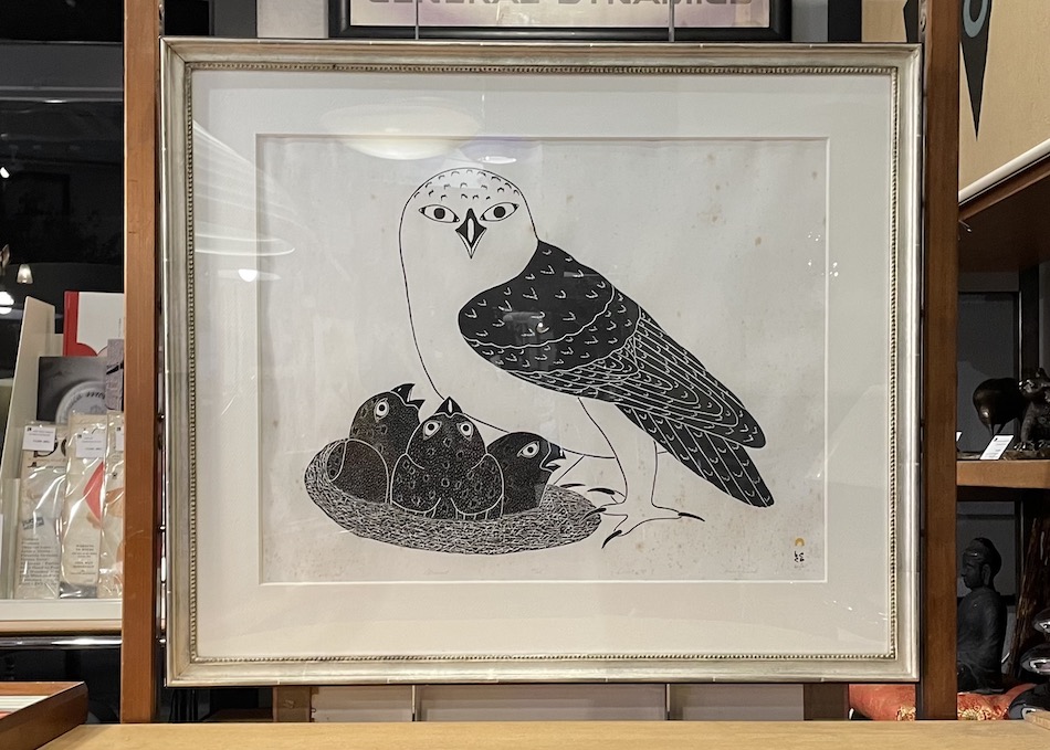 1988 INUIT Artist “Kananginak Pootoogook” Stone Cut Print 「PROUD OWL」