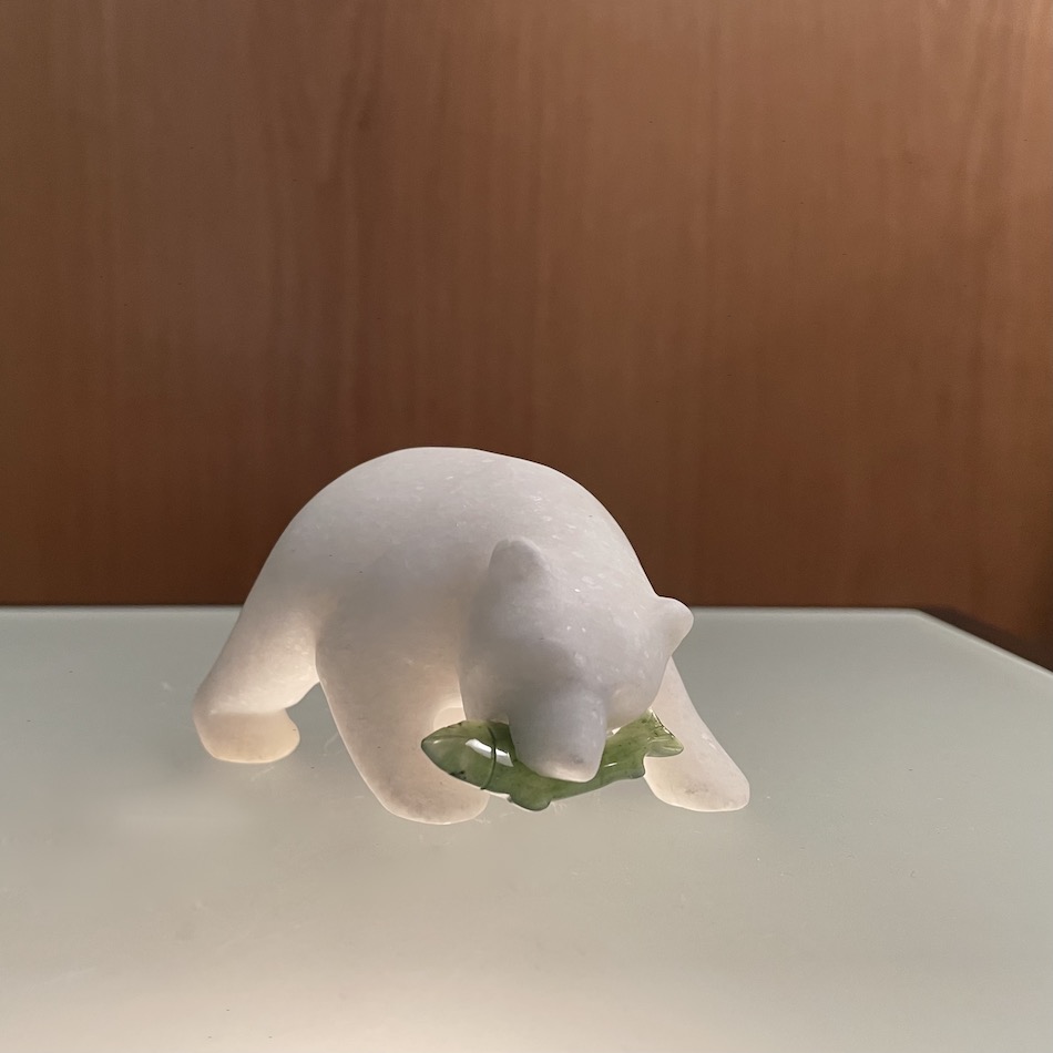 Inuit Craft Star Marble Carvings Bear with Jade FIsh