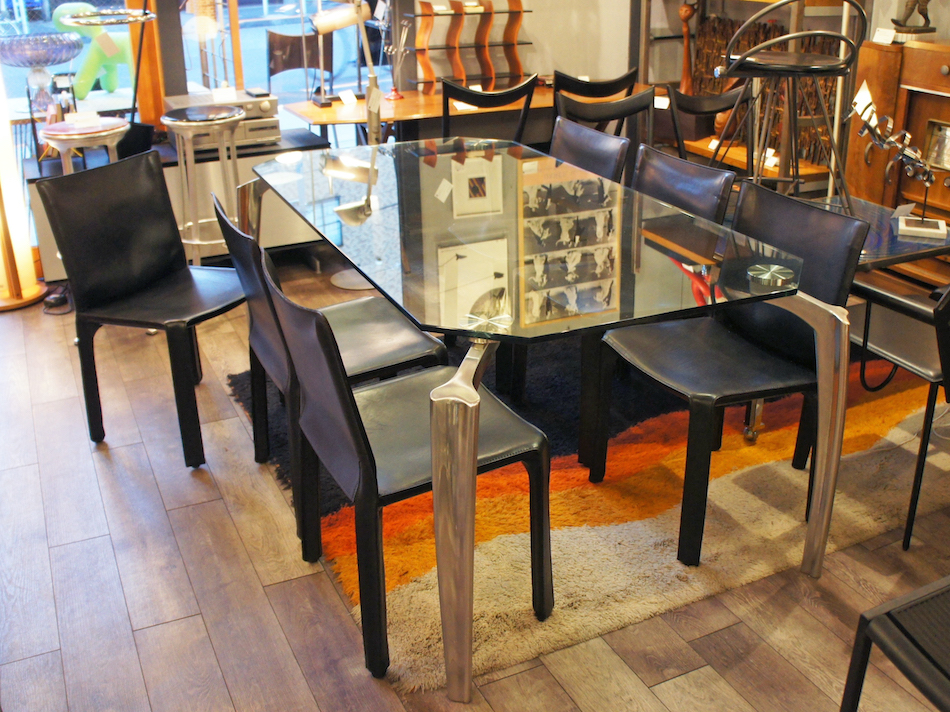Cassina “CAB” Side Chair ×6 & Italy Custom Made Glass Top Table Set