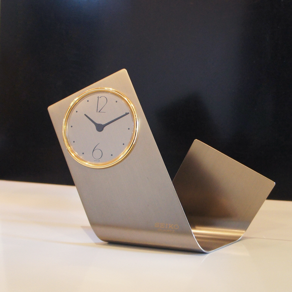 絶妙な角度で自立しているアート性の高いテーブルクロック。