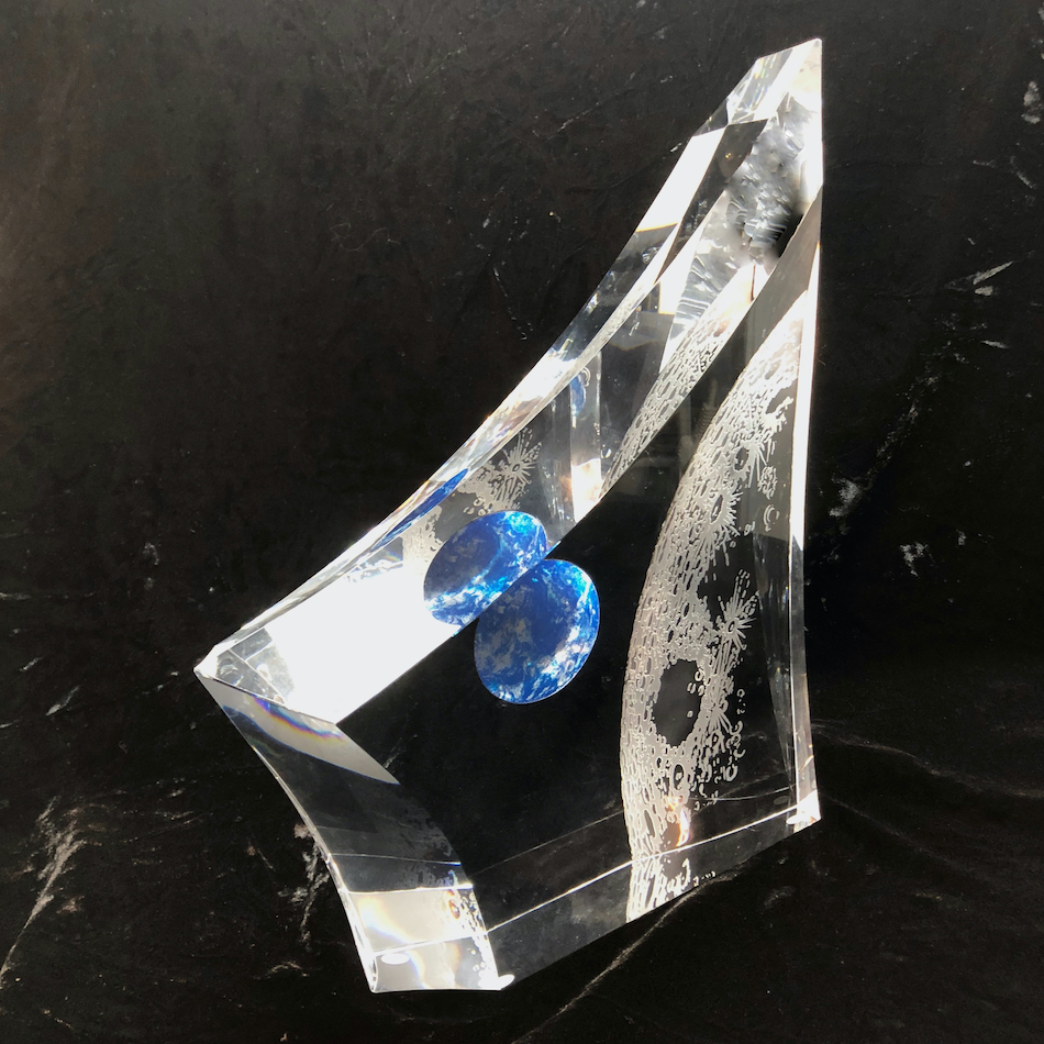 (右) “HOYA” Crystal Art Sculpture “Earth seen from the moon”