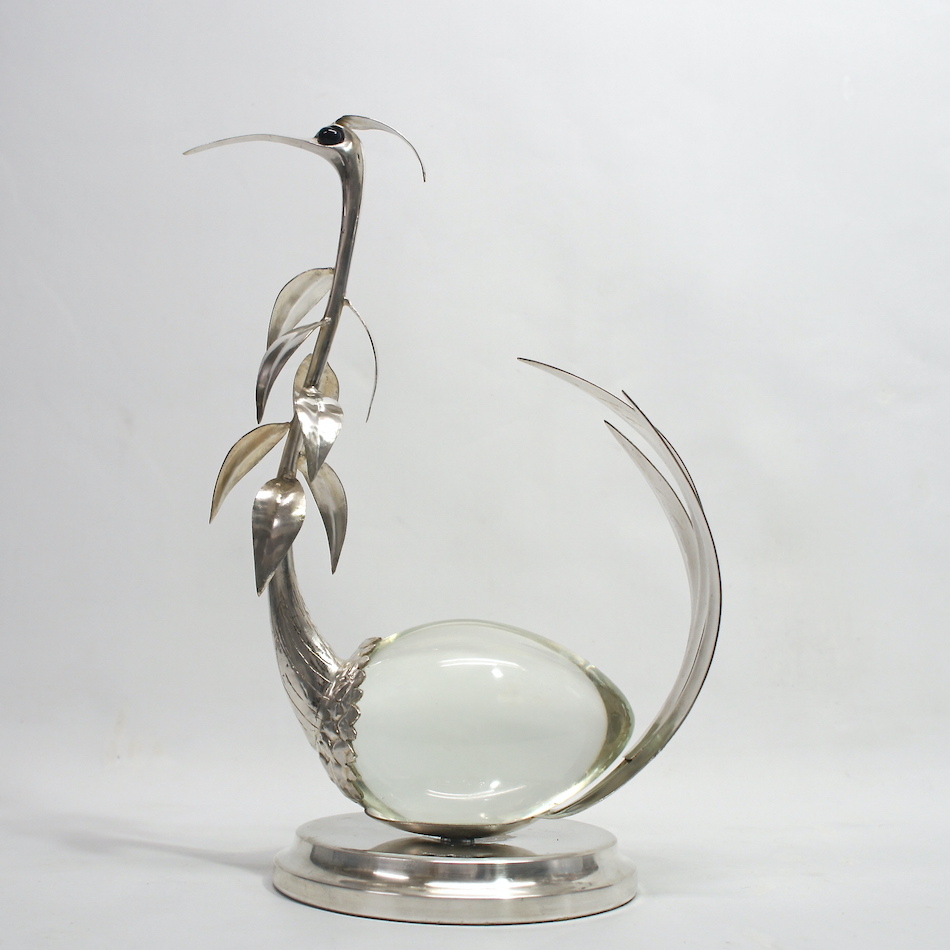 1984 Italy “Franco Lapini” Silver & Murano Glass Bird Objet