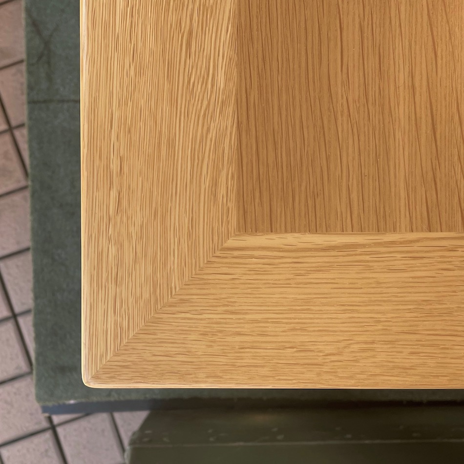 テーパーした天板コーナーの美しい組み継など、随所に造りの丁寧さが見てとれます。