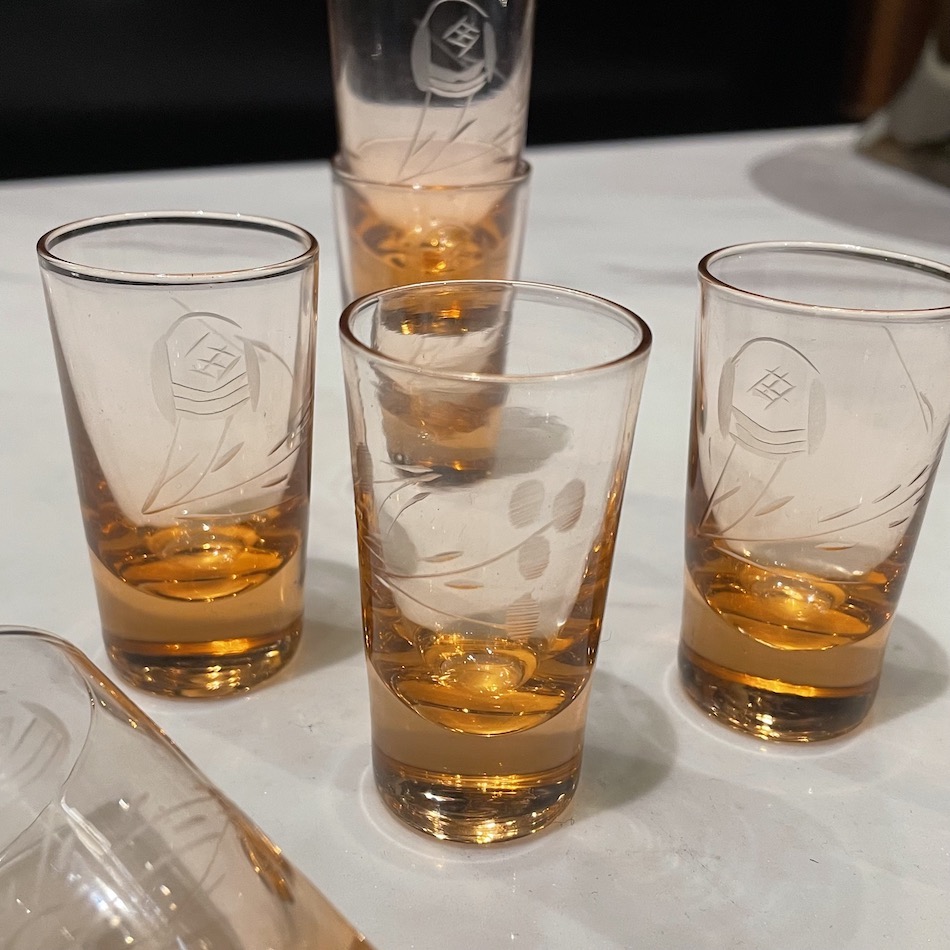 昭和30年代 草花カットショットグラス 6点 BOXセット