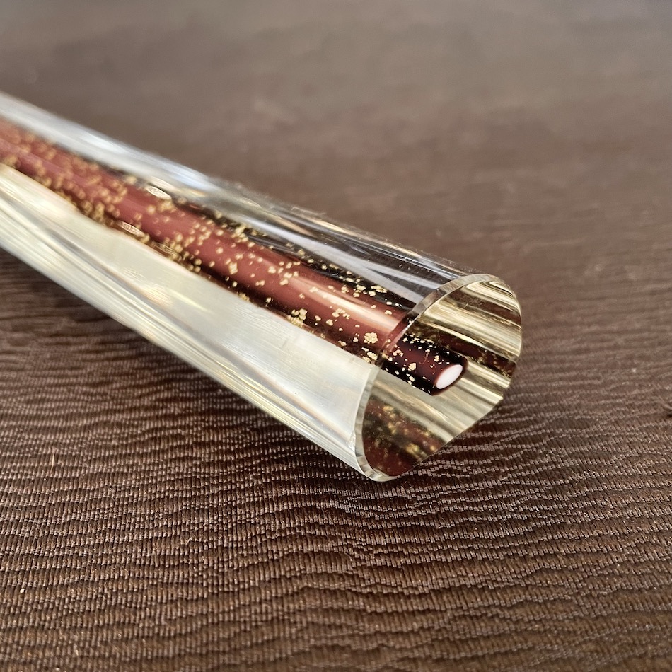 岩田ガラス工芸の二代目“岩田久利”による、金彩を散りばめた美しいケーンが封入されたペーパーウェイト。