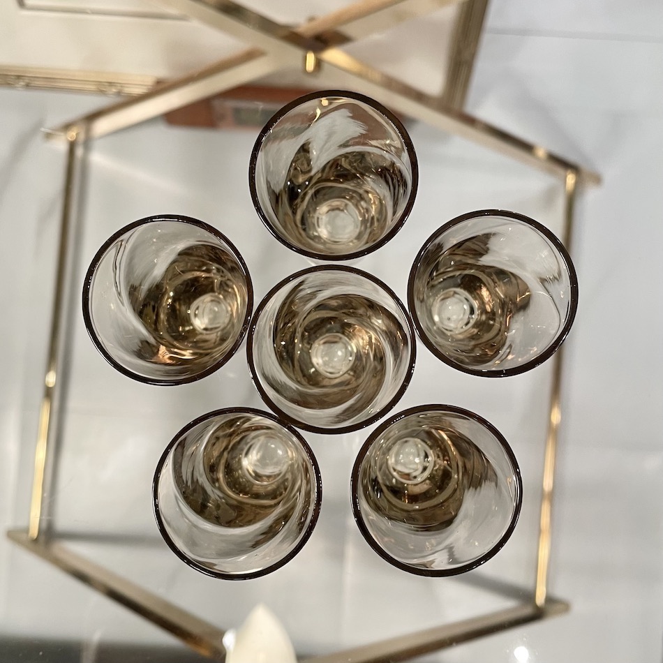 ひねり模様の入ったスモーキーカラーガラスのショットグラス。単品での販売です。