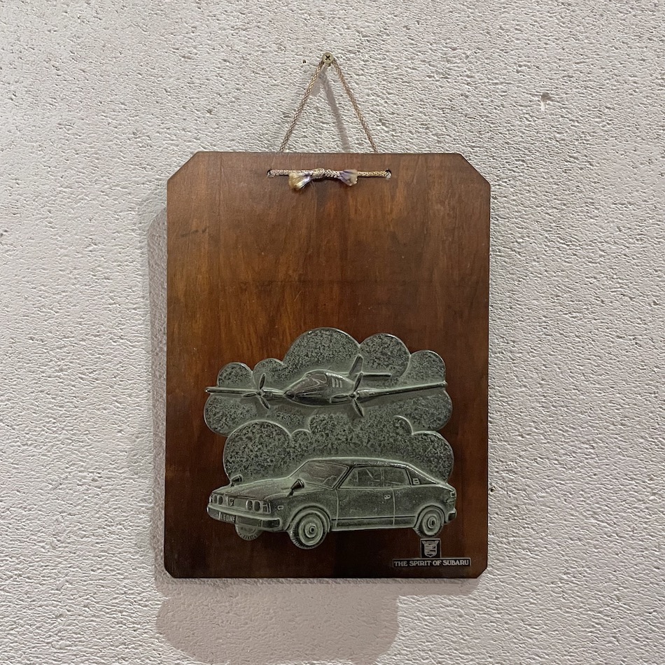昭和48年に発売された”スバル レオーネ”のハードトップと同社双発プロペラ機”モデル700″をブロンズに刻んだレターラック。