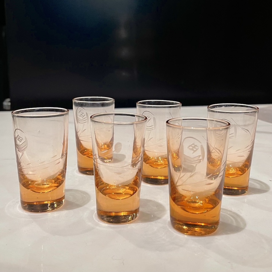 昭和30年代 草花カットショットグラス 6点 BOXセット