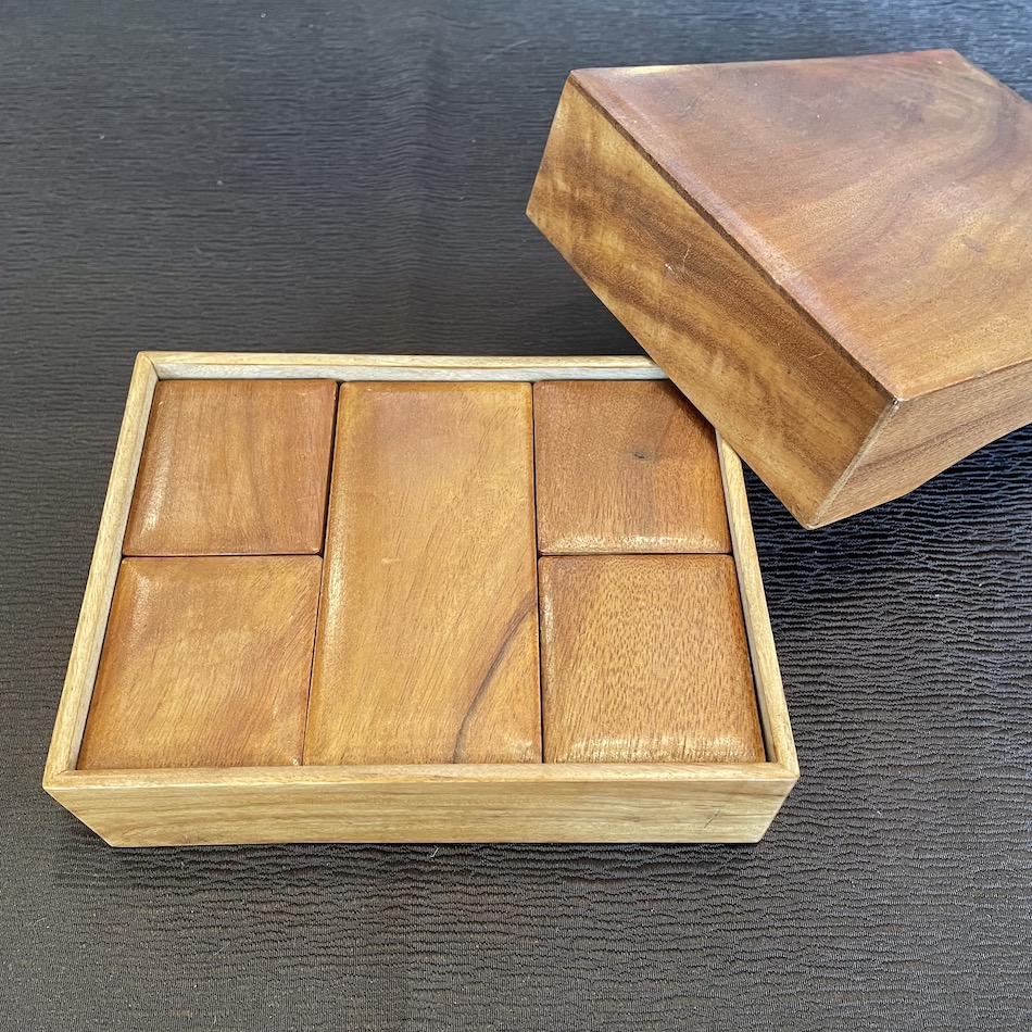 13.5×17.5cmほどのボックスの中にさらに小さなボックス計5個が綺麗に入れ子状に収まるウッドボックス。