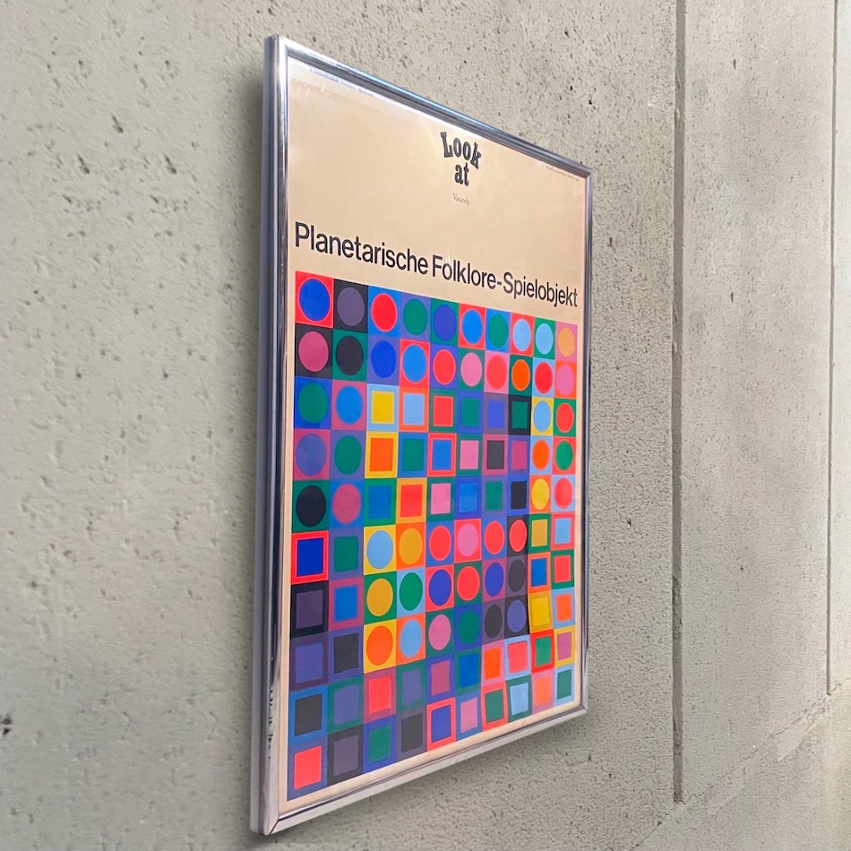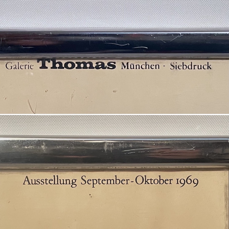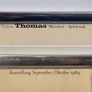 1969年9月〜10月、ミュンヘンの”Galerie THOMAS” Munchen / トーマス・ギャラリー”で開催された”VICTOR VASARELY / ヴィクトル・ヴァザルリ”の展覧会 のために刷られたシルクスクリーンポスターオリジナル。