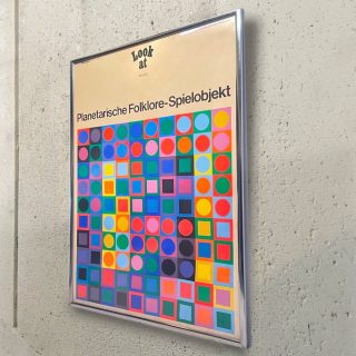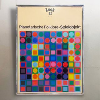 「Planetarisches Folklore-Spielobjekt / 惑星の民俗玩具」と題した展覧会で、ドイツのカラフルな積み木おもちゃを連想させる幾何学パターンを並べたビジュアルが楽しく美しいポスターのオリジナルプリントです。