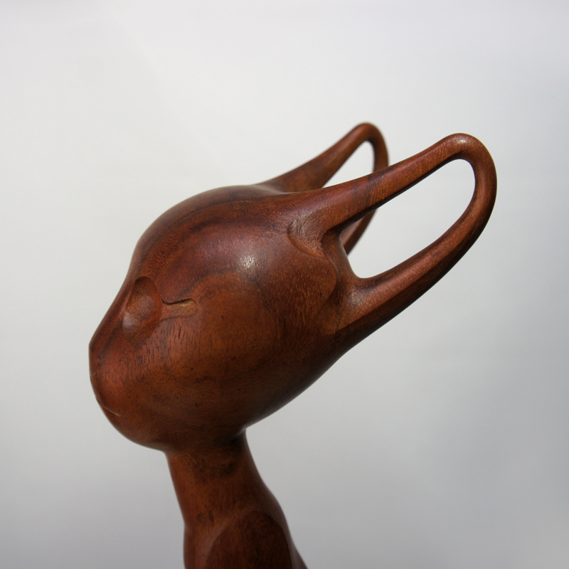 無垢のチークから削り出した大型彫刻作品「犬守」。
