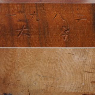 作品裏に「一九八二 犬守」と刻まれ、台座底には作家鉛筆サインと「1970」と記されており、1970年と1982年は干支が「戌」という事から、干支に因んだ制作意図があると考えられますが作家等の詳細は不明。