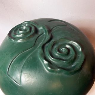 本来の作品は信楽焼の陶器製ですが、こちらはFRP成型にウレタン樹脂塗装。内部は中空でサイズ的にも陶器製の作品より僅かに大きいサイズ、現物作品から型取りして製造したともの思われます。
