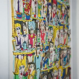 この”CAFE IN PARIS”もまた、パリの街角に集う様々な人々を描き、今にも彼らが動き出し、賑やかで愉しげな会話が聞こえてきそうなポップアート作品。