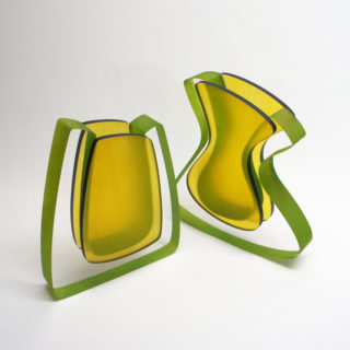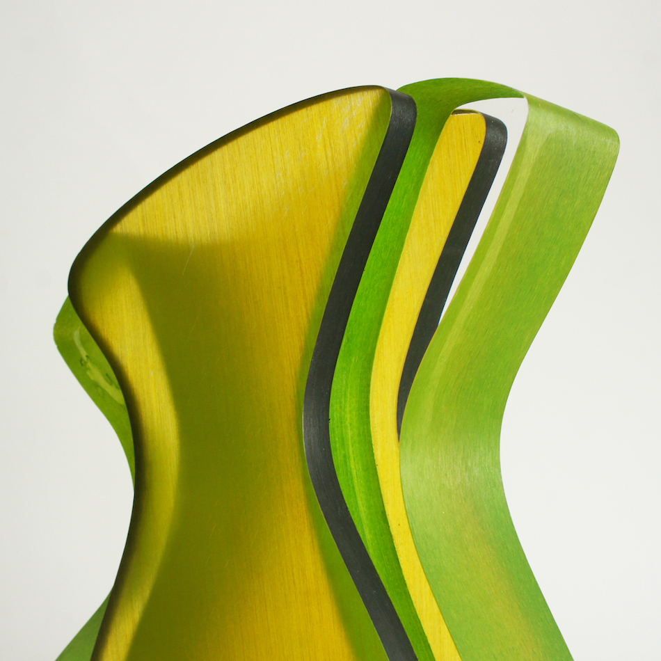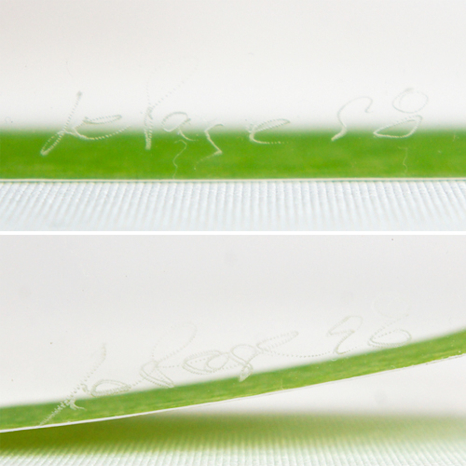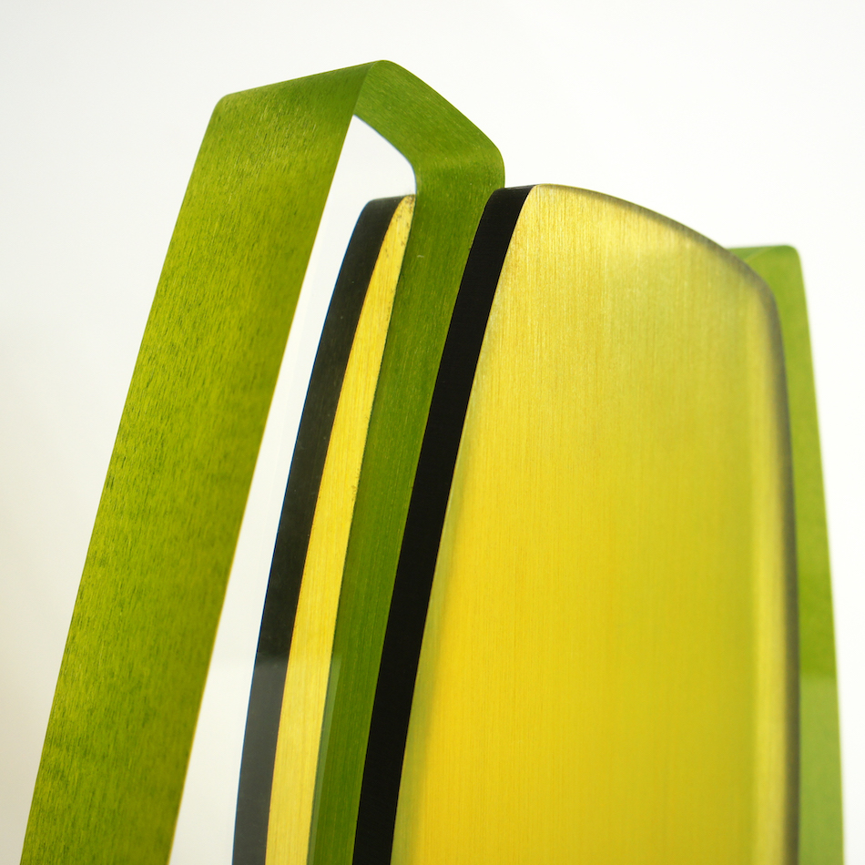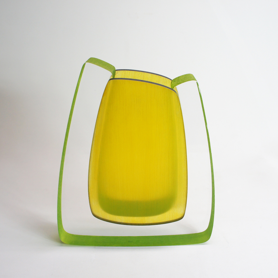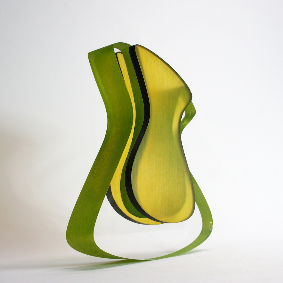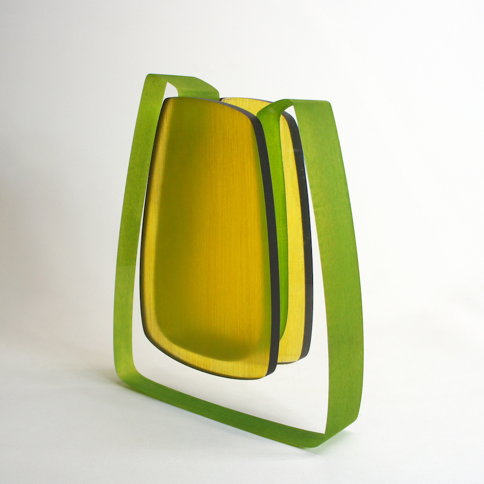 ルーサイトのカラフルなマテリアルによって生み出される作品たち。透明な外郭部の造形には鮮やかな中央部のグリーンカラーが光によって彩られ、美しいアウトラインに包まれる。アーチストのイマジネーションがカタチとなって描き出される魅力的なの表現です。