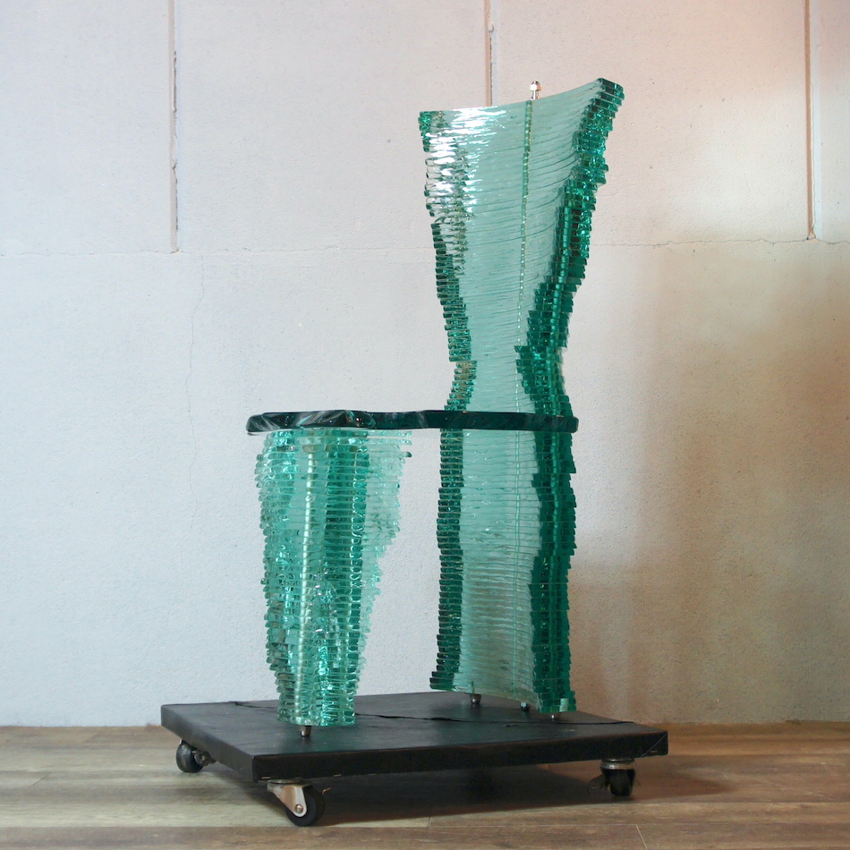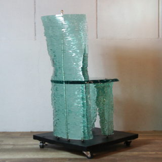 小さなオブジェからパブリックアートまで手がける、世界的なガラスアートであるダニー・レーンは家具の作品も数多く手掛けており、当作品はその比較的初期に制作されたチェア作品の一つ。