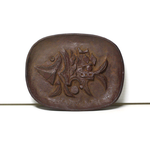 1960年代以降くりかえしモチーフに選んだ魚。絵本に登場しそうな和やかで暖かい描写で、極めて立体的な陽刻とキュビズム的表現が楽しい。