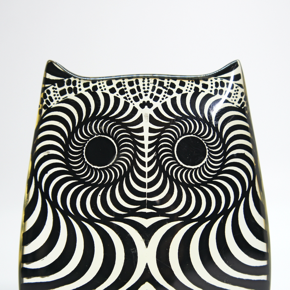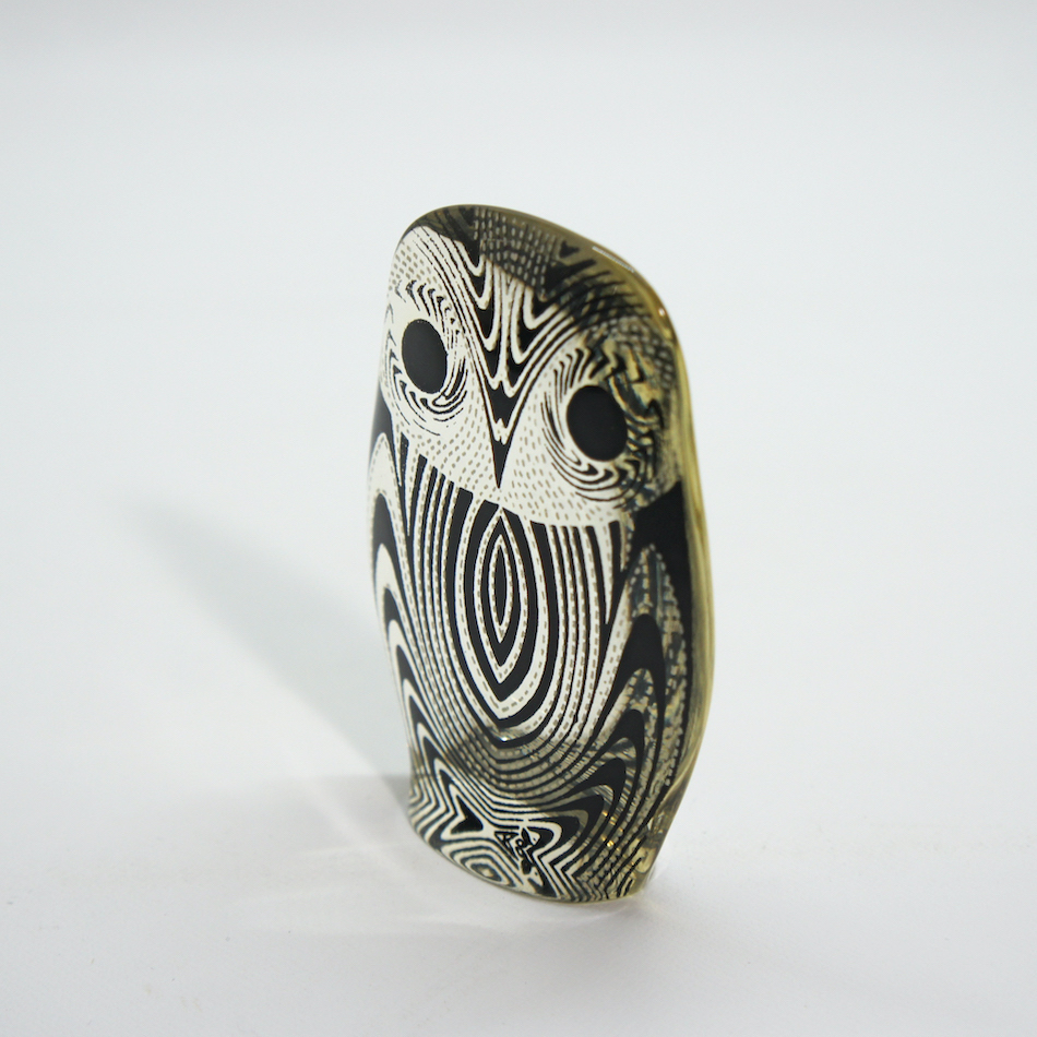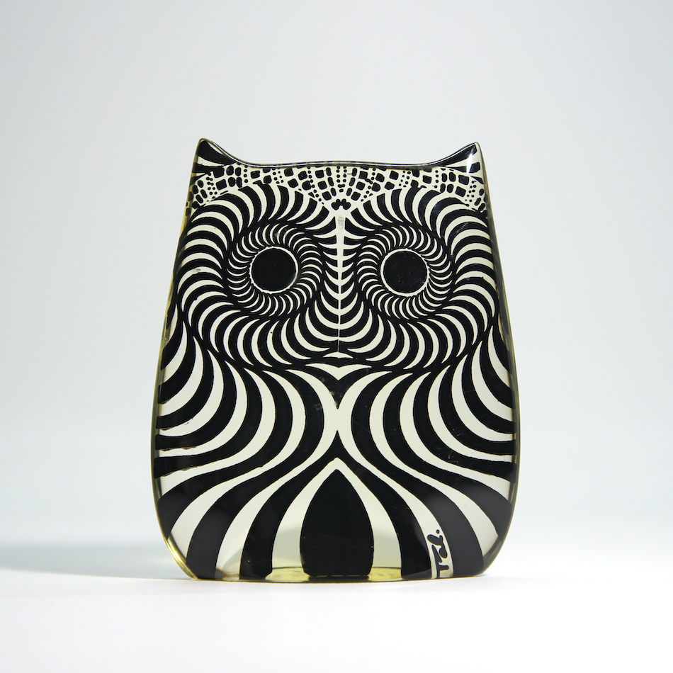 ロシアユダヤ系ブラジル人のオプアート作家、Abraham Palatnik / エイブラハム・パラトニクのルーサイトアニマルオブジェ「Owl / フクロウ」2種。