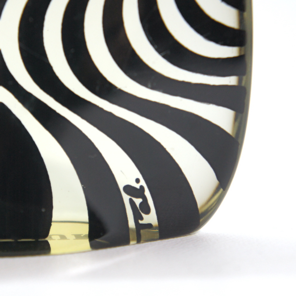 絵柄を表裏両面からルーサイトで挟み込んで形成、オプチカルなグラフィック効果を活かした立体感と生命感を生み出す独自の技法で、1960年代に数百種以上に及ぶ動物をモチーフとしたルーサイト(アクリル)オブジェを制作。