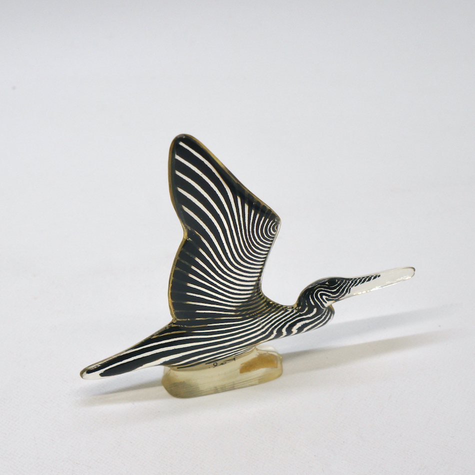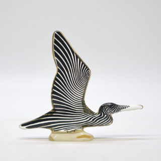 この鷺もバリエーションのひとつで、翼を大きく広げた体全体に等高線状のグラフィックが描かれ、勇ましく羽ばたくツルを表現。