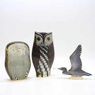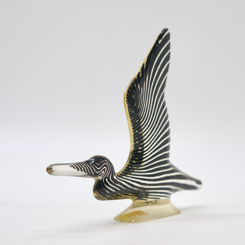 絵柄を表裏両面からルーサイトで挟み込んで形成、オプチカルなグラフィック効果を活かした立体感と生命感を生み出す独自の技法で、1960年代に数百種以上に及ぶ動物をモチーフとしたルーサイト(アクリル)オブジェを制作。