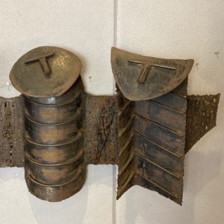 昭和30年代から営業を続け、数年前に閉店した老舗喫茶店の壁面を飾っていた鉄製の彫刻作品。