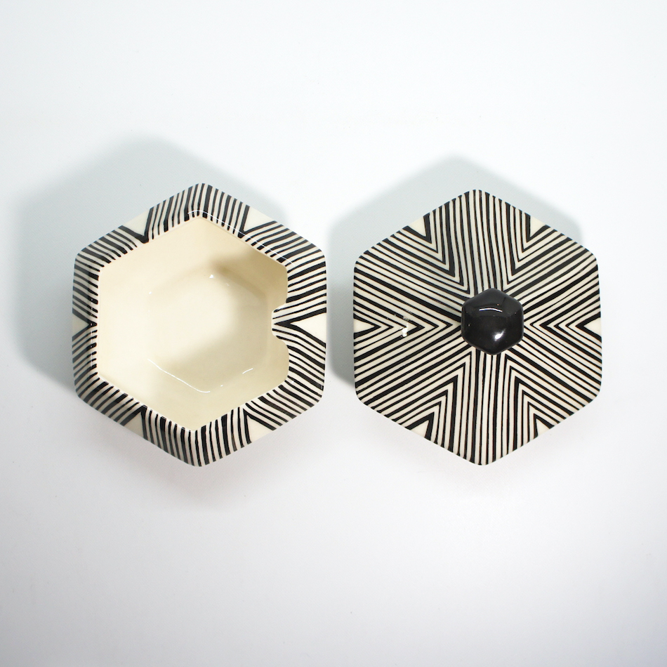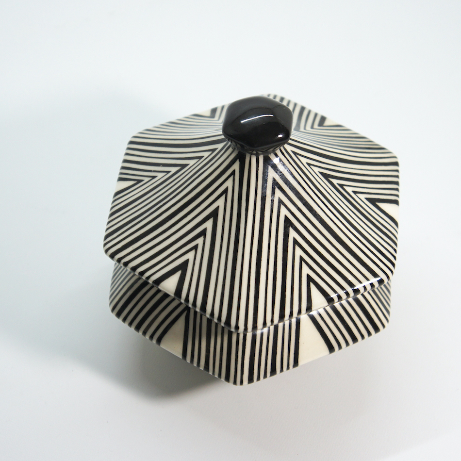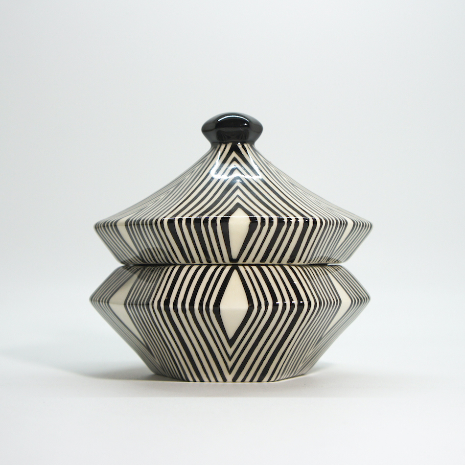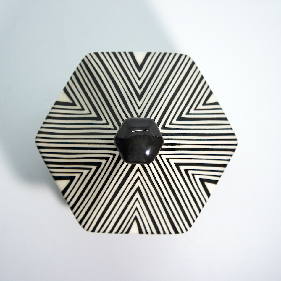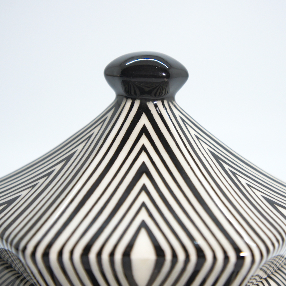 20世紀初頭チェコのキュビスム芸術運動の中核的存在であった建築家 Pavel Janak / パヴェル・ヤナークが手掛けたセラミックシリーズ。この国立美術工芸博物館所蔵のオリジナル品をプラハの”KUBISTA/キュビスタ”社が精巧に再現した公式リイシューの蓋付容器。<br>
