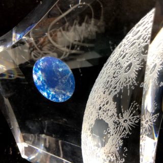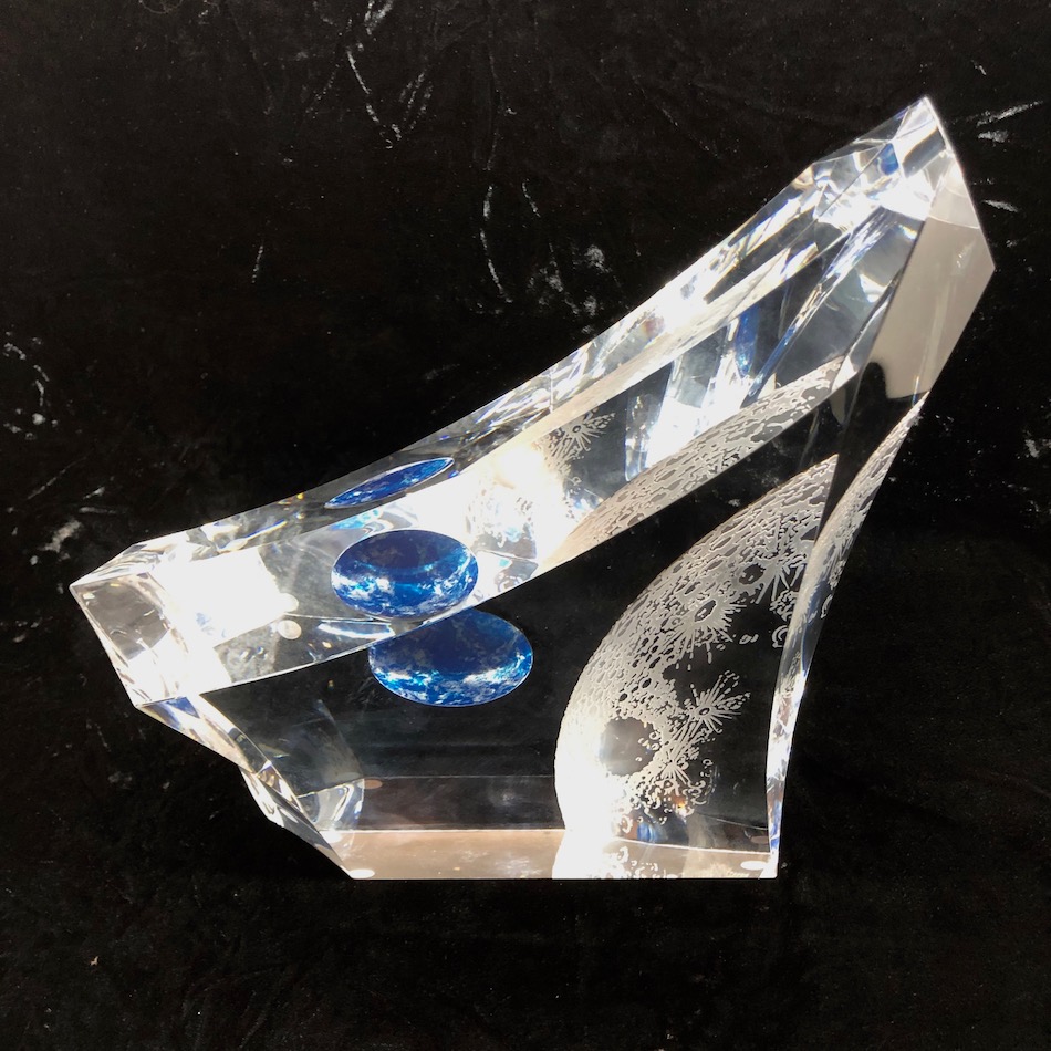 “保谷硝子”が制作したランドスケープ・アートグラス「月から見た地球(仮題)」クリスタルスカルプチャー。