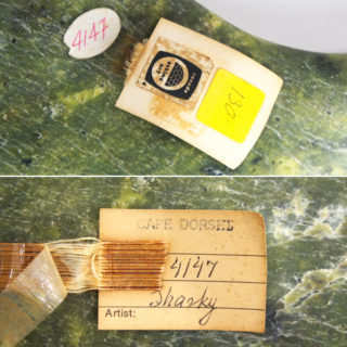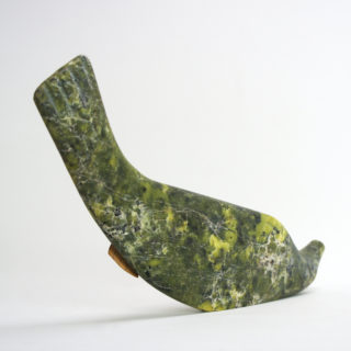 このアザラシのスカルプチャーも抽象的な造形とお腹を上にしたポーズなど、自然への愛着や感謝といった作家の純粋な創作表現が感じられる精神性豊かな作品。全長35cmの大きさに加え、グリーンの斑模様が他には無い独特のオーラを放っています。