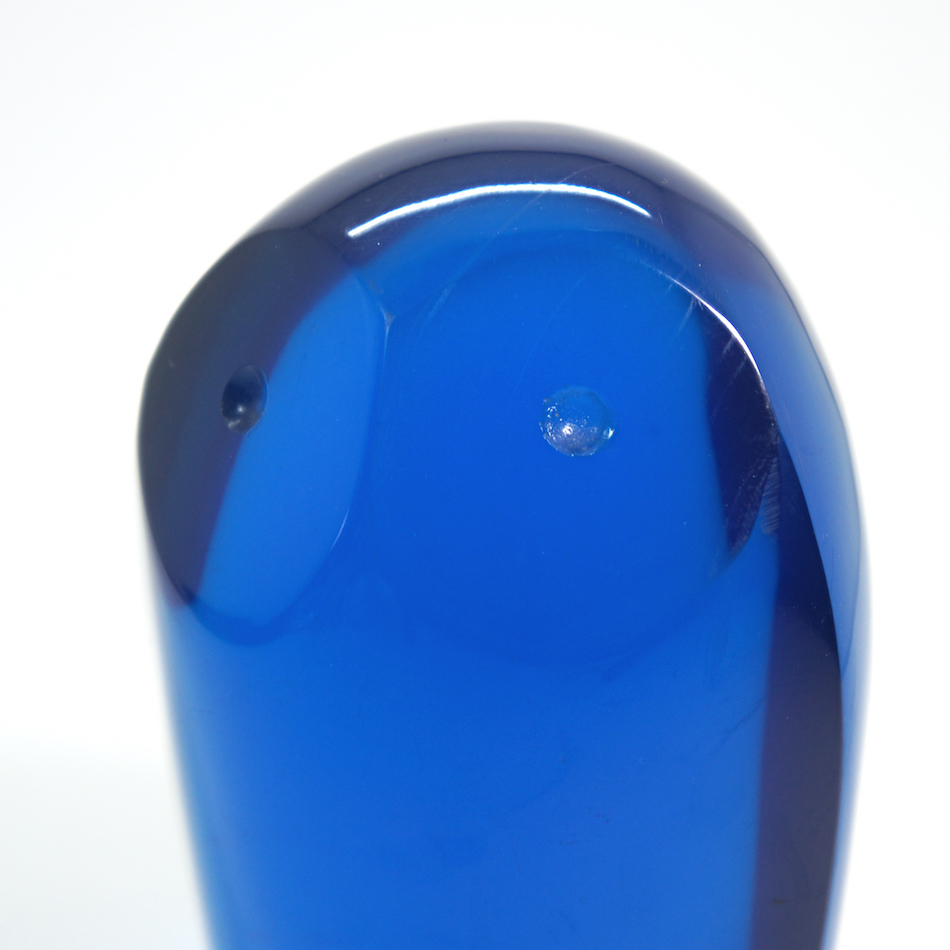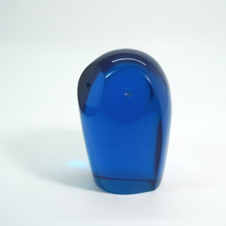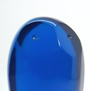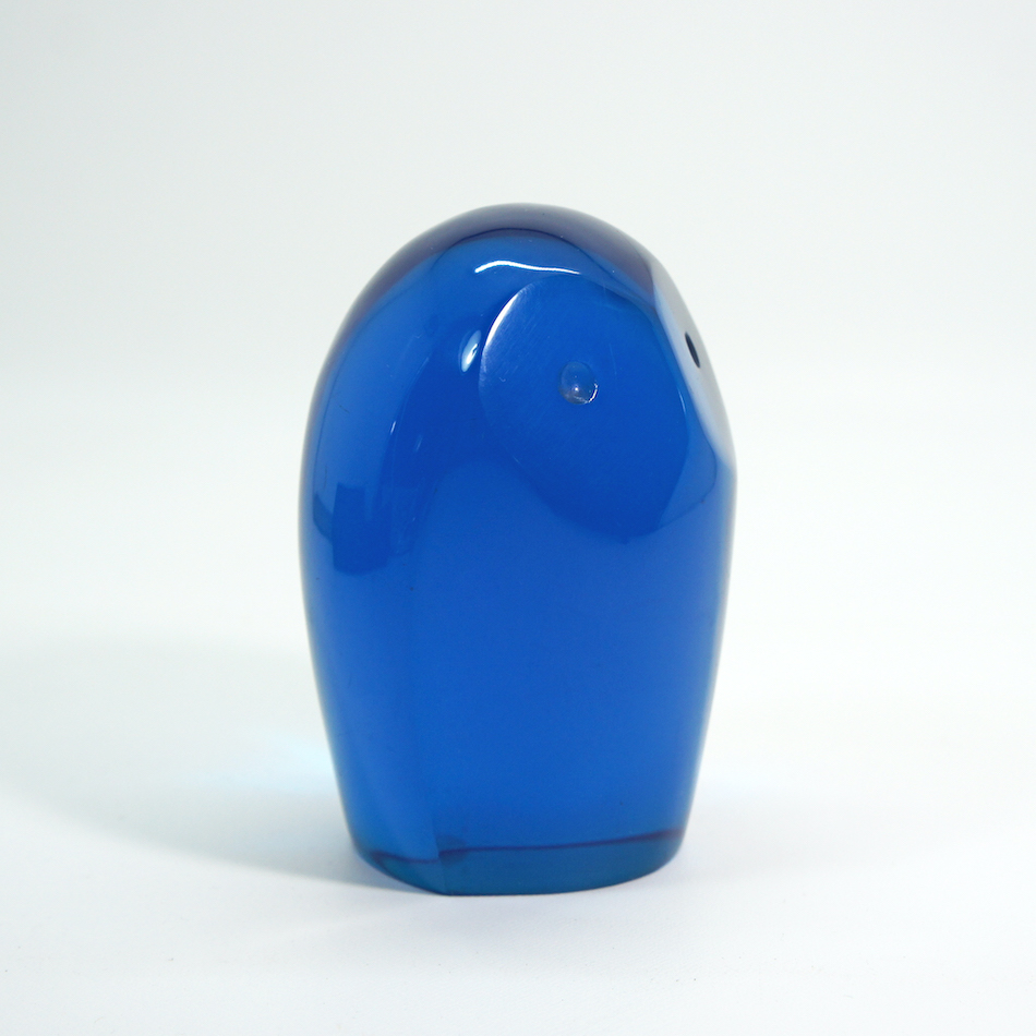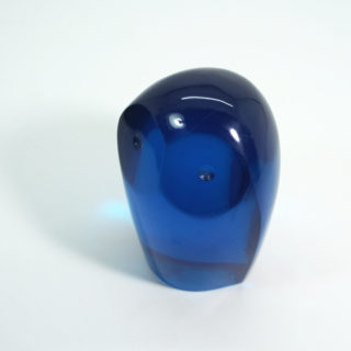 この「Owl / フクロウ」も、ミッドナイトブルーのボディーの前面と目玉部分を滑らかに面取り、瞳を小さく彫り込んだだけで独特の可愛さとひょうきんさを表しています。