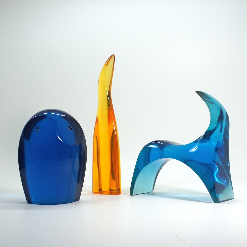 3種とも、透明なカラールーサイト(アクリル樹脂)のミニマルな抽象的造形ですが、それぞれの特徴を的確に捉えて魅力的。