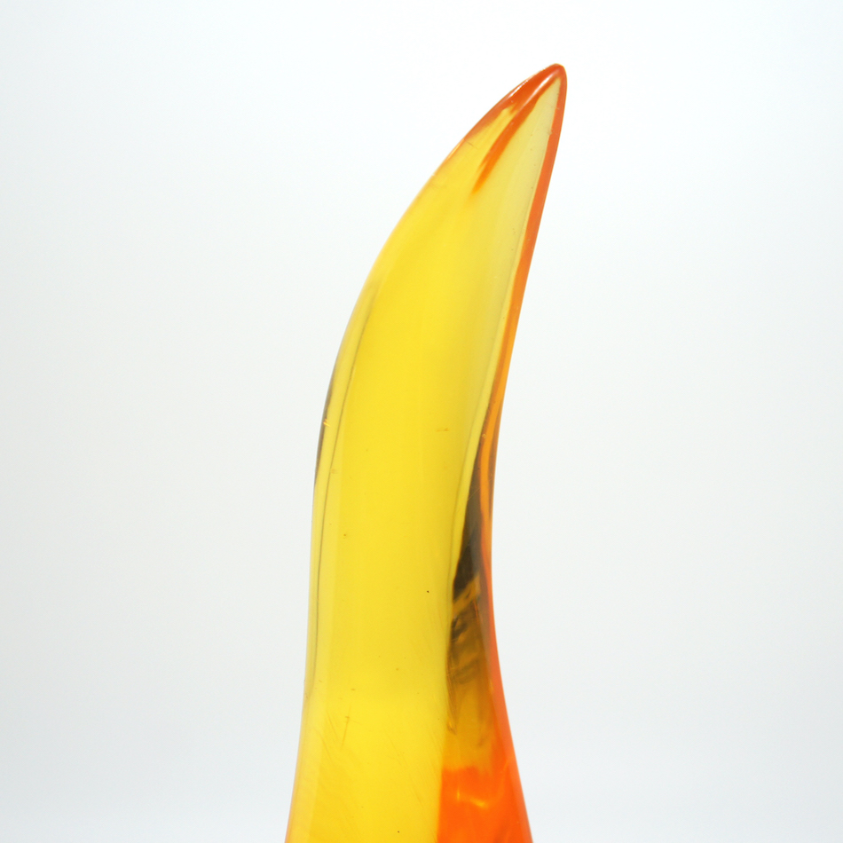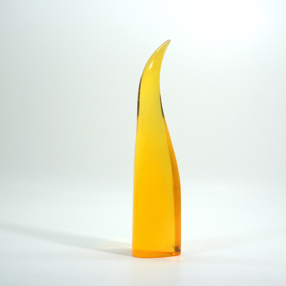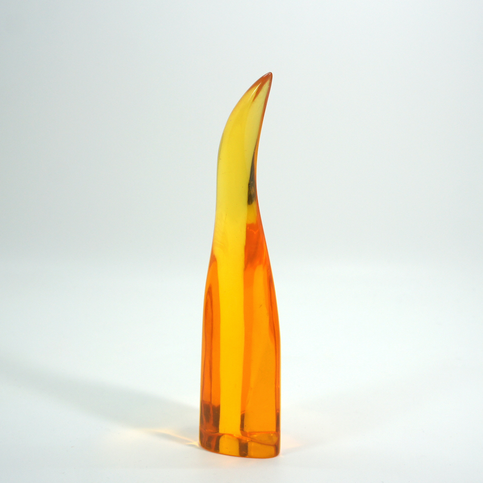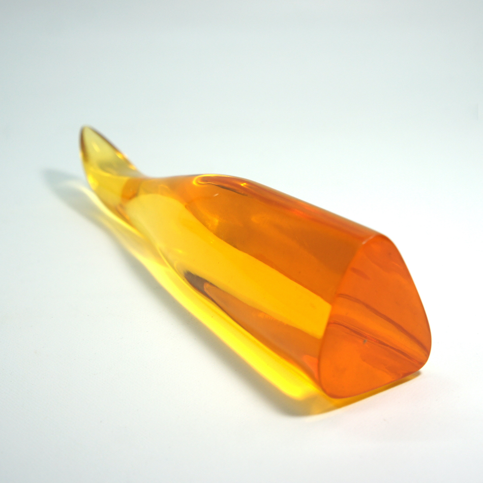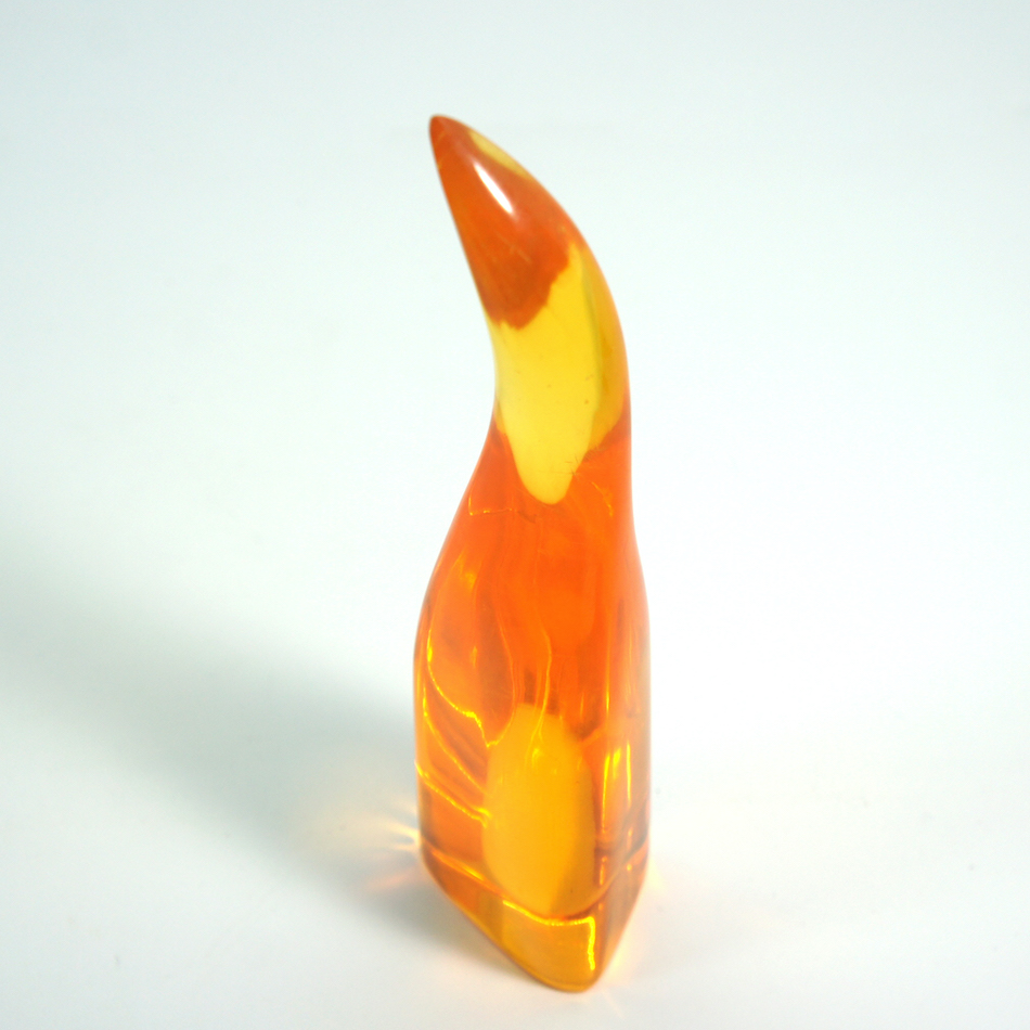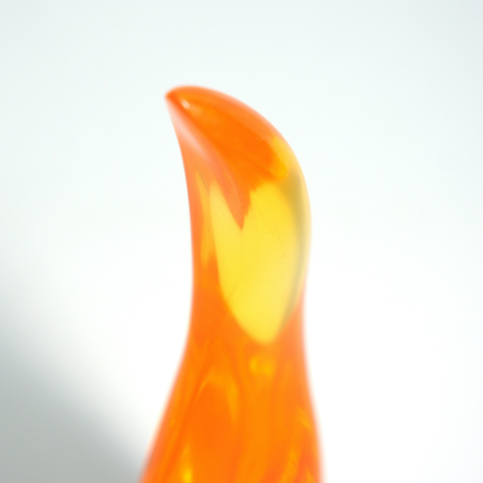 この「Penguin /ペンギン」は、クリアオレンジのボディーを流線型にシェイプし、正面を滑らかに面取っただけでキョトンと佇む独特のフォルムを見事に表現しています。