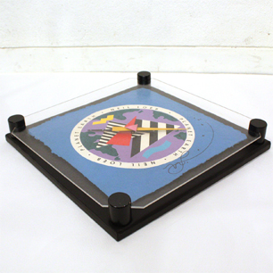 氏の創作の最大の特徴である自身の手で作るキャストペーパー(鋳造紙)に独創的なPOPペイントとプリントを施した大胆で楽しいアートワークを時計にしたユニークな作品「PLANET EARTH」