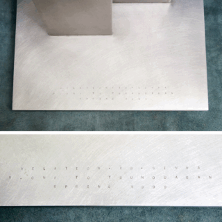 台座プレートに「RELATION・18・****** TO ******* SPRING 1999」との企業と個人らしき名称を含むアルファベットが小さく刻印されていることから、提携や合併など何らかのビジネス上の関係、契約の成立を記念して制作されたものと推測しますが、詳細は不明。