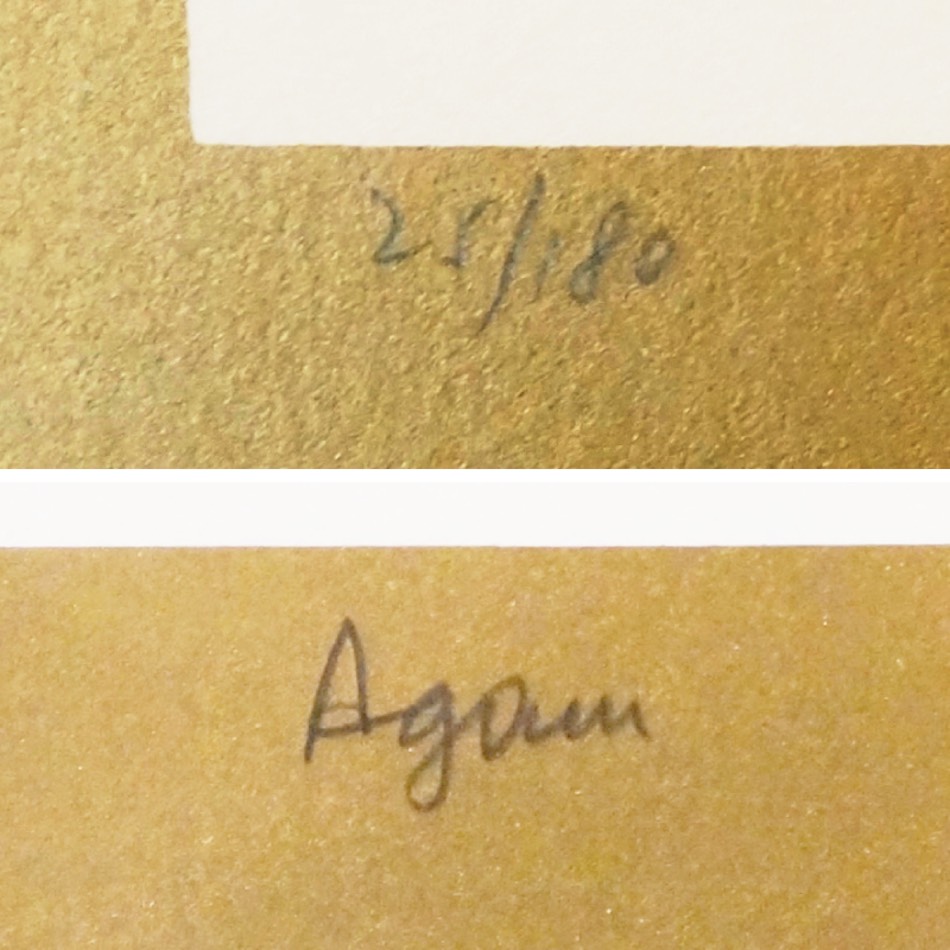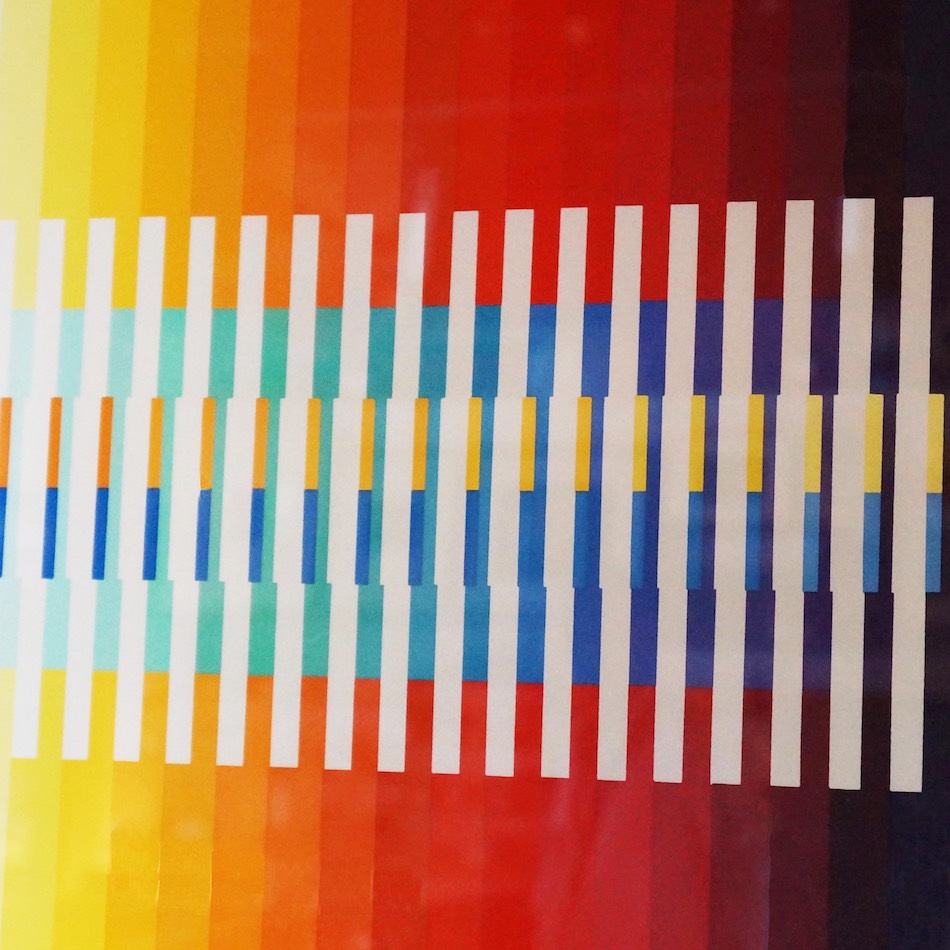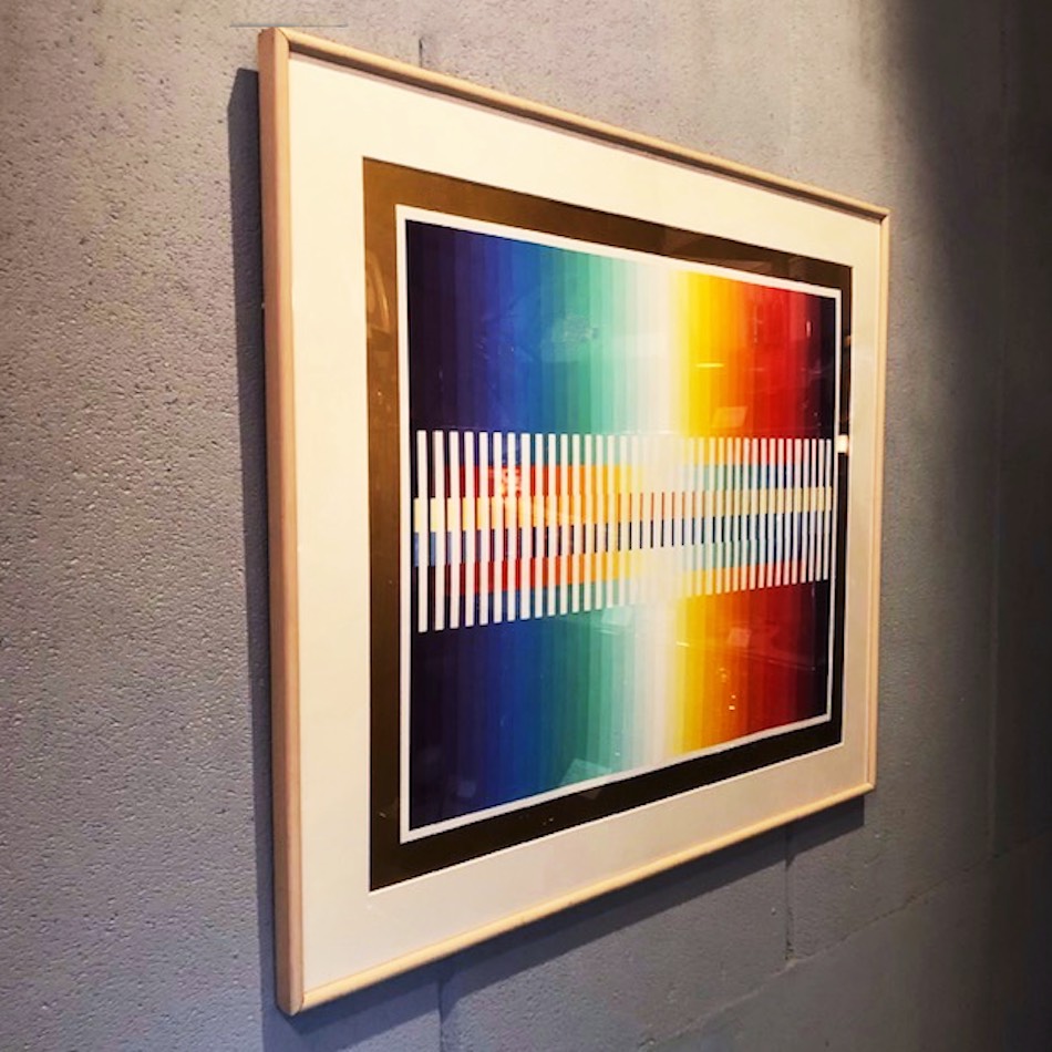 ユダイズムの芸術を源流とし、1950年代より独自の表現技法でヴァザレリらと共にオプ・アート/キネティック・アートのパイオニアとして世界的に評される”Yaacov Agam / ヤコブ・アガム” のシルクスクリーン作品 “Intergrated Rainbow (仮題)”