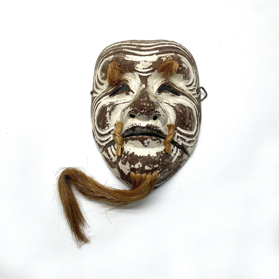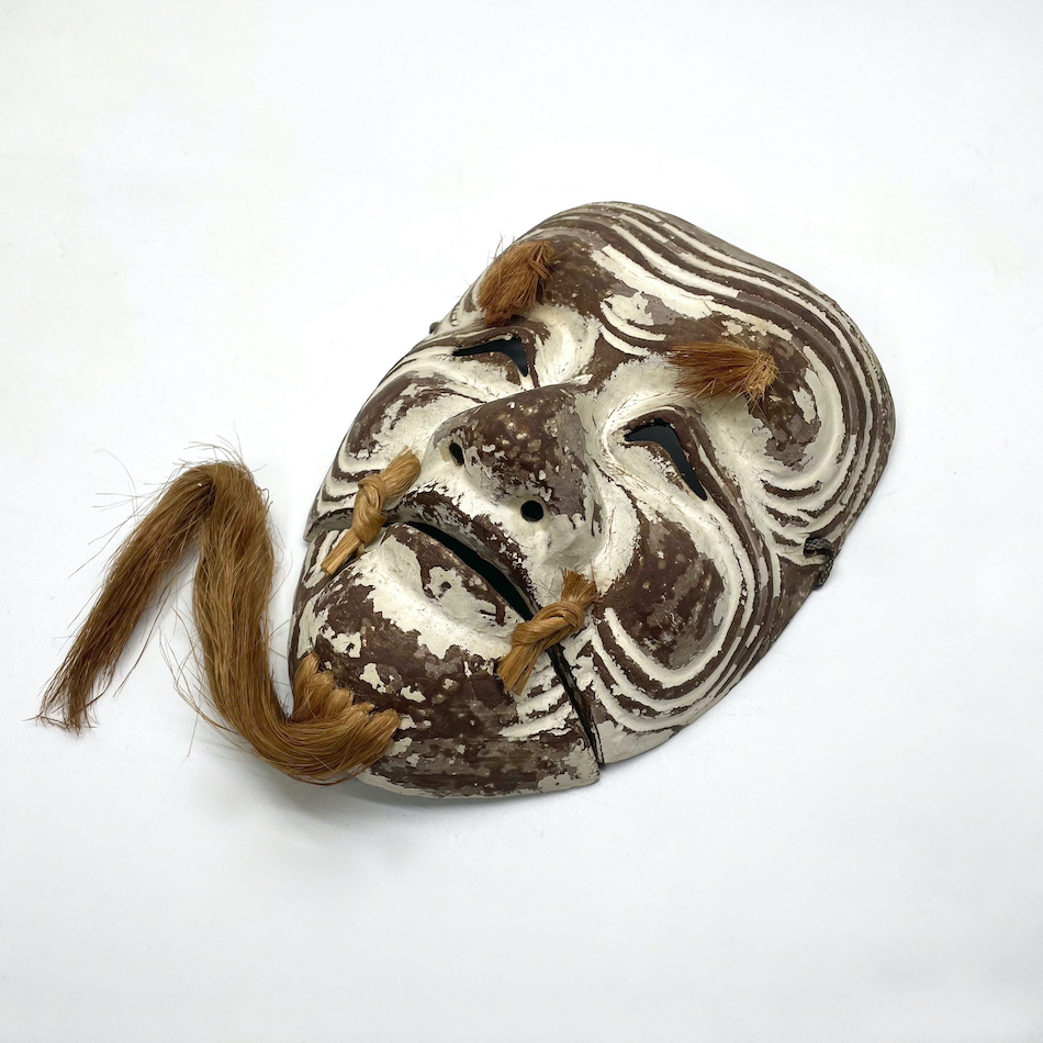 古い乾漆と獣毛の翁の能面