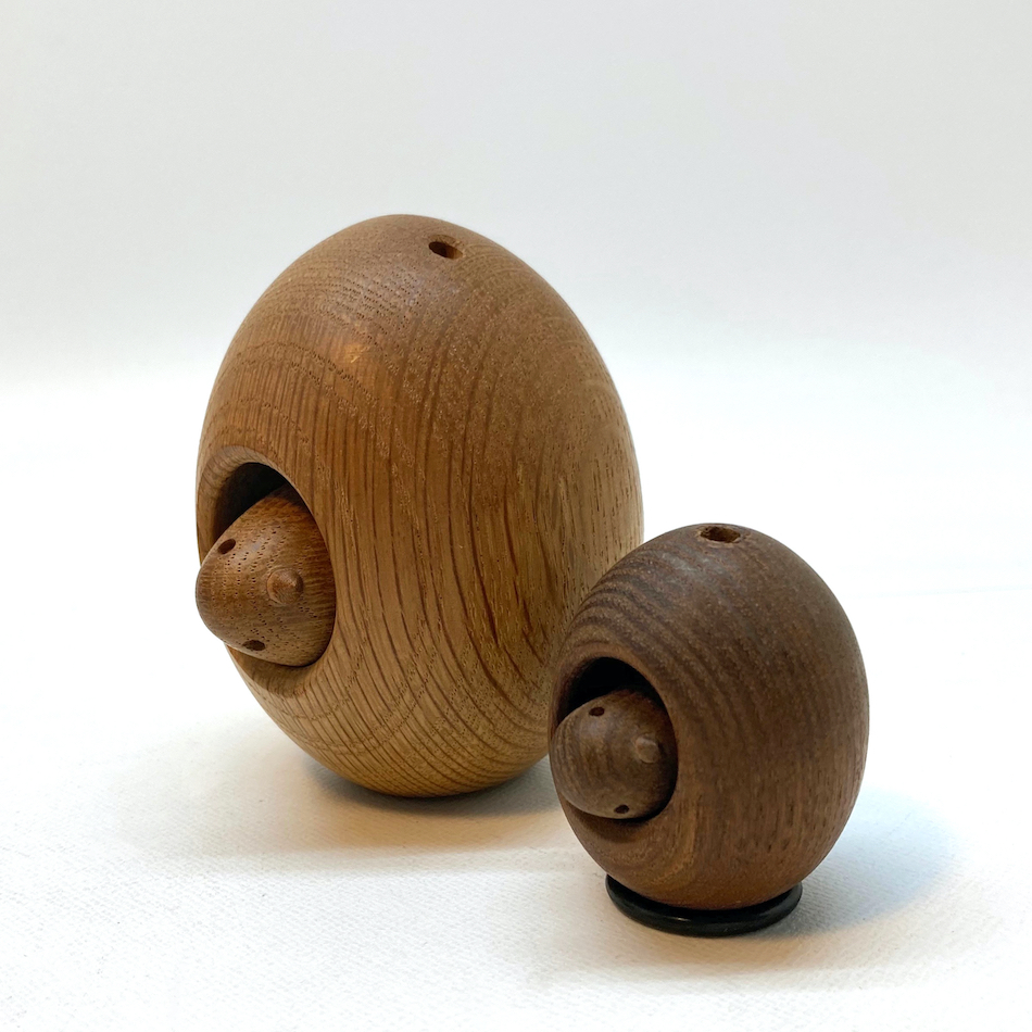 今は亡き、北海道旭川の工芸作家・木地師の”故 太田久幸”が制作した “HISA-CRAFT” 作品「卵ハト」の大 / 小。