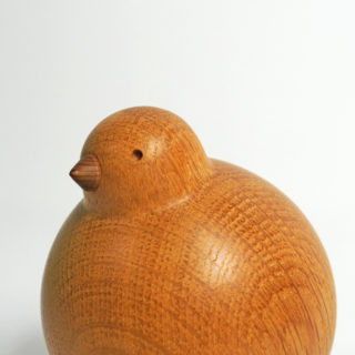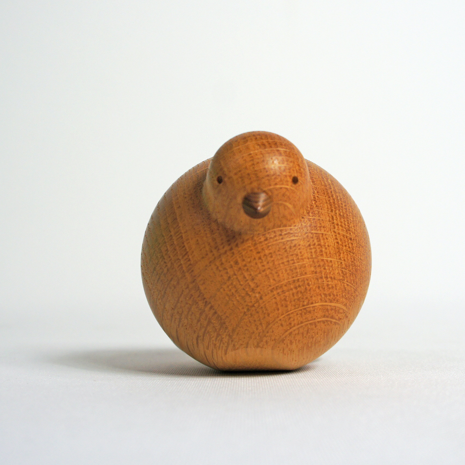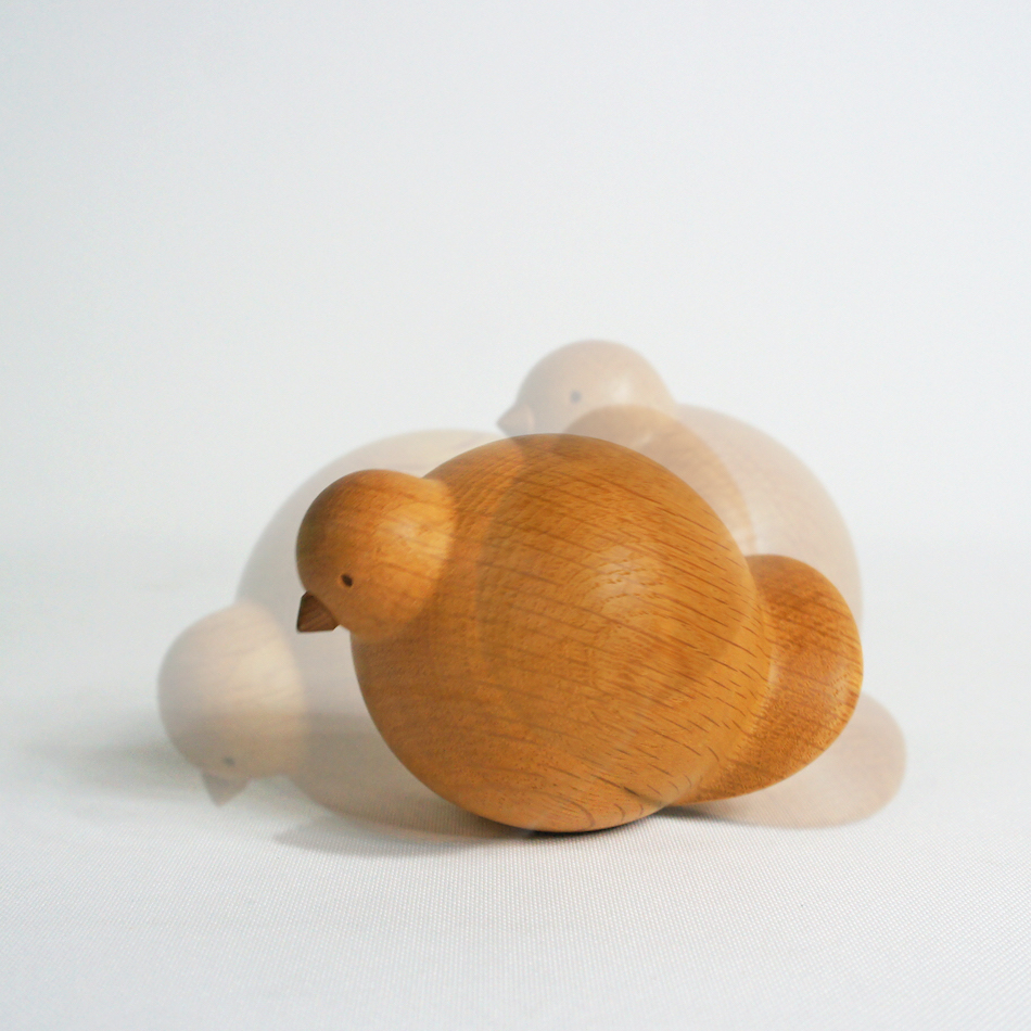 真ん丸で、ハトの特徴を捉えた巧妙なデフォルメが手のひらに収まる可愛らしいサイズ。自らを木地職人と名乗り、木工旋盤によってひとつひとつ手作業によって生み出されたぽってりとしたフォルムは、軽く押すと起上り小法師のようにゆらゆらとスウィングします。