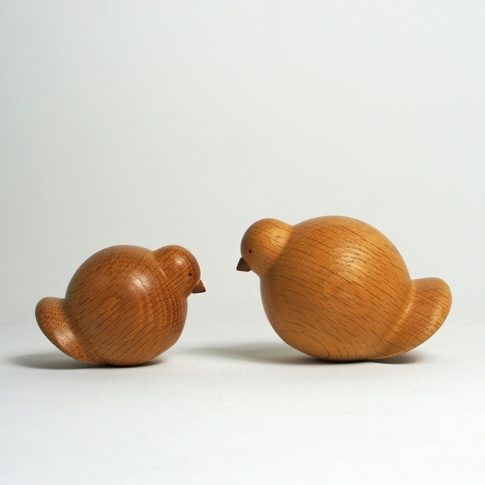 今は亡き、北海道旭川の工芸作家・木地師の故 太田久幸が制作した丸シリーズのHISA-CRAFT作品「親子鳩」のセット。