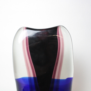 ガラスに流れる紫のレイヤーと青い帯