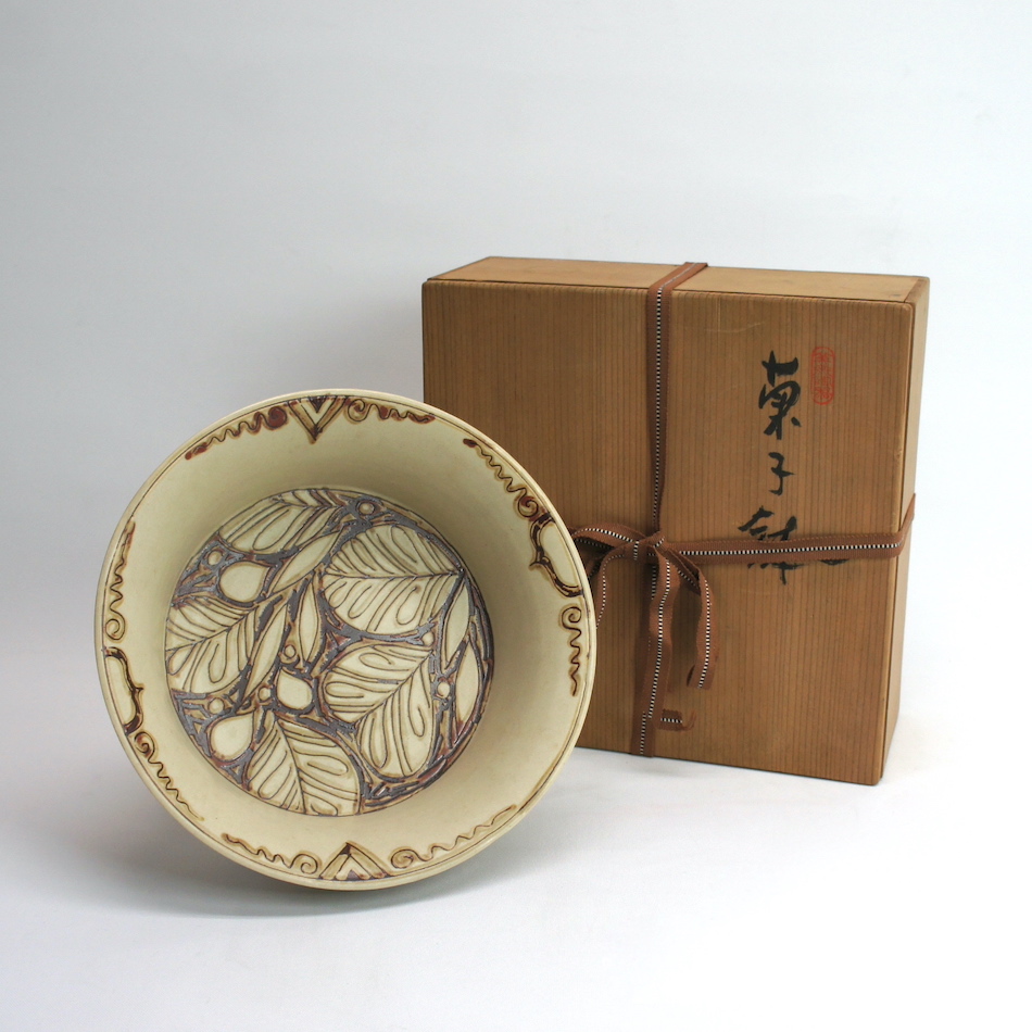 戦後日本の陶芸に於いて”デザイン”の重要性を唱え、その後のモダンクラフトに大きな影響と足跡を残した知山陶苑 二代 安藤光一 の葉紋鉢<br>