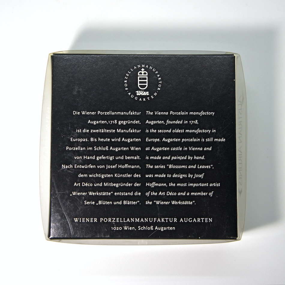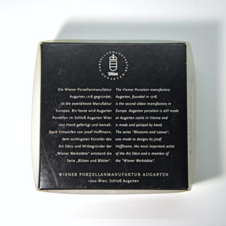 ウィーン磁器工房 “AUGARTEN WIEN / アウガルテン”が、伝統的な職人のハンドペイント技法で生産。自身の建築をモチーフにしたかのような”ホフマン”のグラフィックを丁寧に描いた小さいながらも非常に手の込んだ工芸です。
