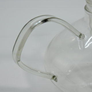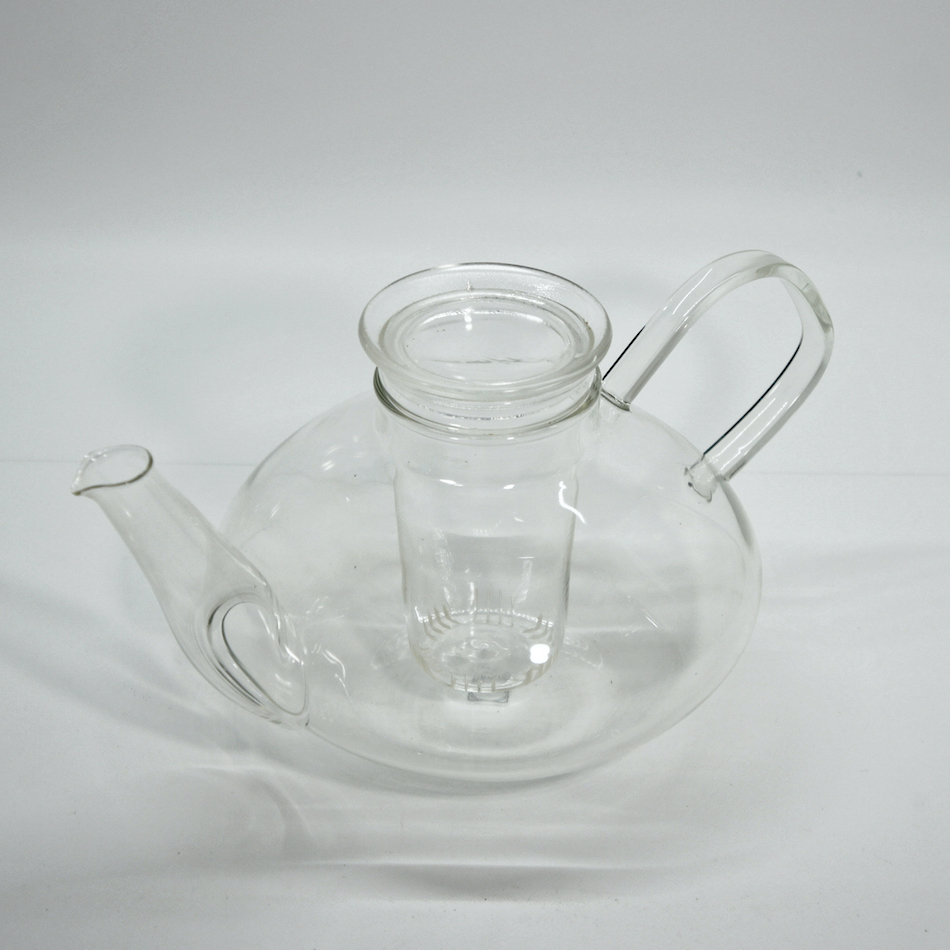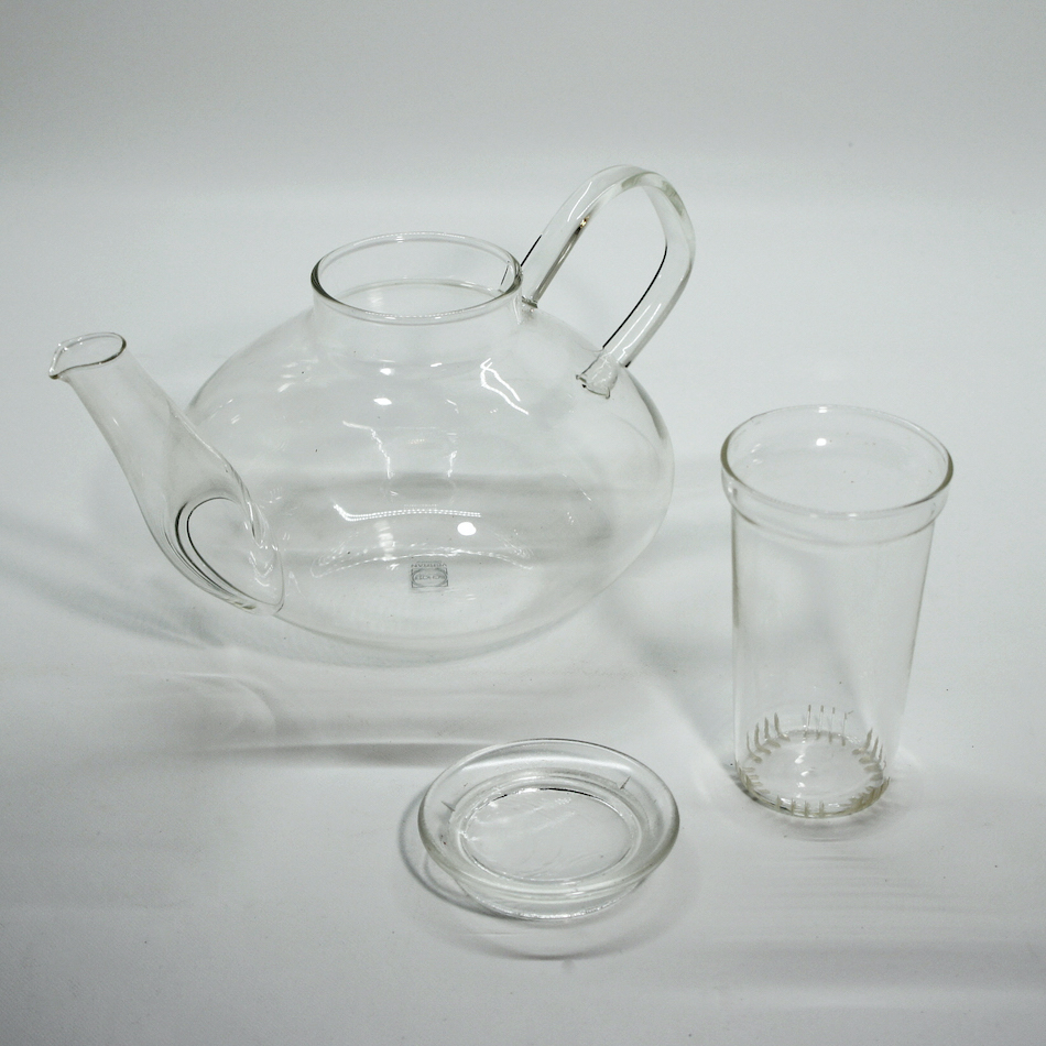 1954年、大戦後に国営化されていた”JENAer Glaswerk Schott & Gen Mainz /イエナ マインツ工場”時代に、創業者の息子であるオーナー”Erich Schott /エーリッヒ・ショット”から ” Wilhelm Wagenfeld /ウィルヘルム・ワーゲンフェルト” が1931年にデザインしたポットを基にした新しい金型をワーゲンフェルトの助手を務めた”レーフェルハルト”に命じてデザインされたものと当店では考えています。