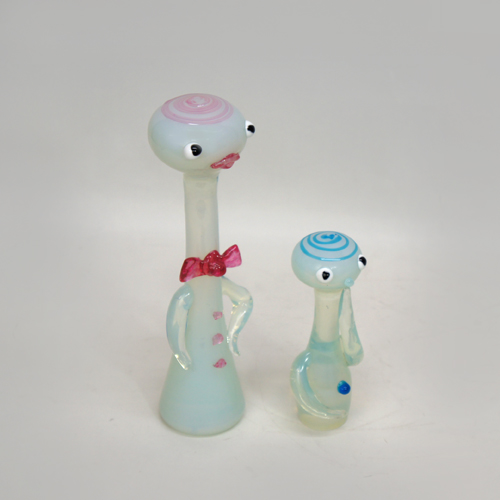 ヴェネツィアングラス史上720年という最古の歴史と伝統を誇り、クリスタルガラスを発明したことでも知られるムラーノ島の名工房”Barobier&Toso/バロビエール&トーゾ”の1960年代ガラスペアフィギュア。<BR>