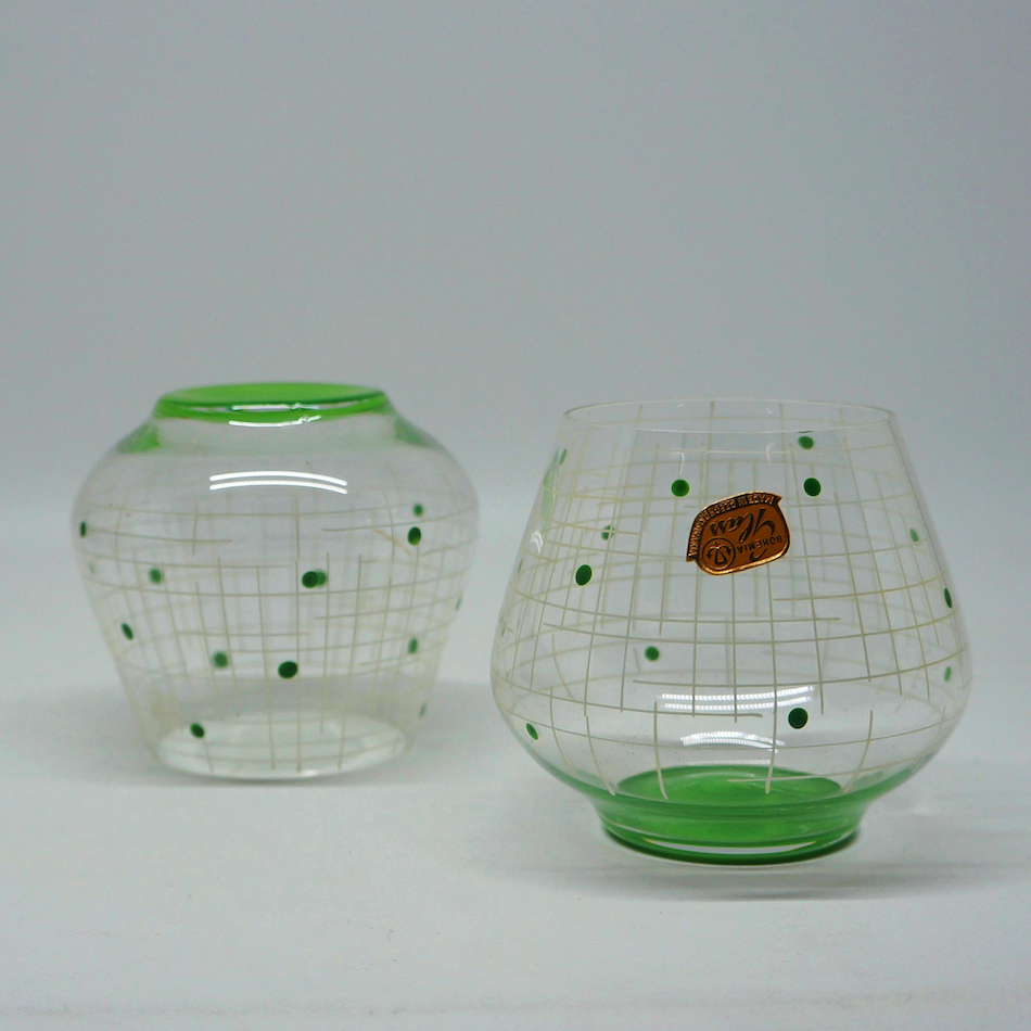 1960年代 チェコ、ボヘミアクリスタルのアトミックデザインドリンクセット。