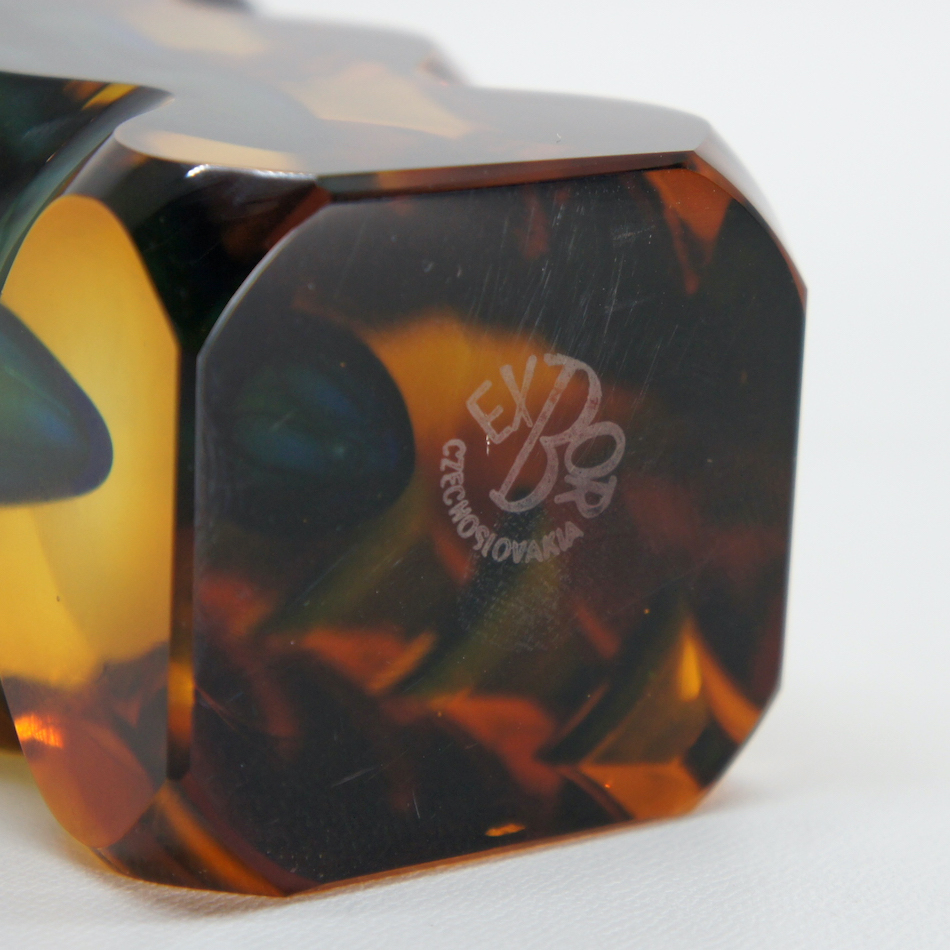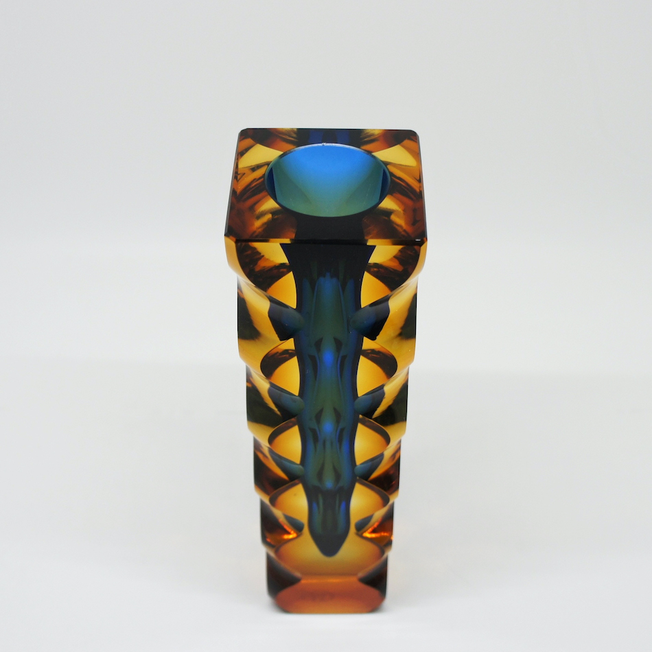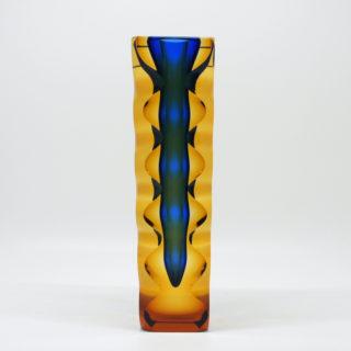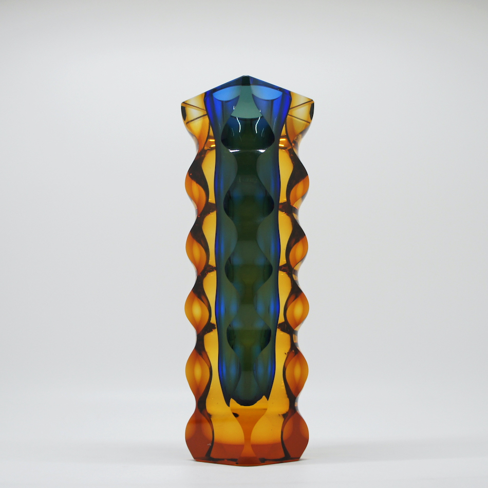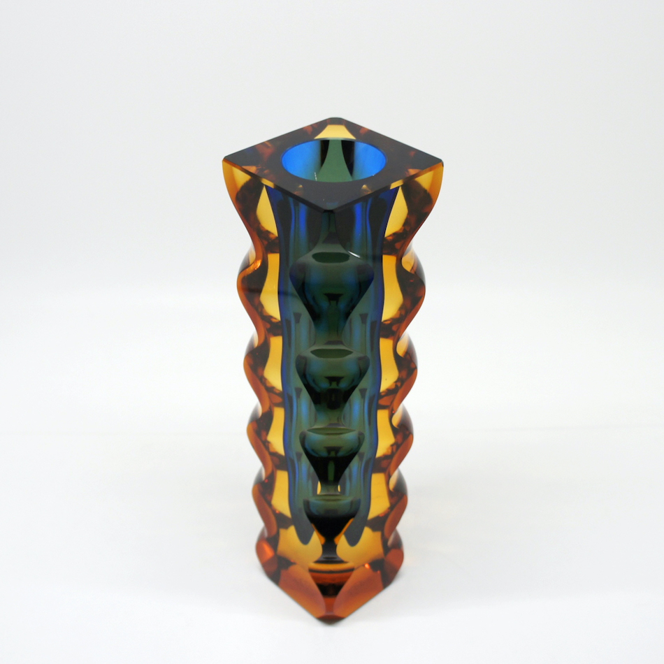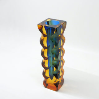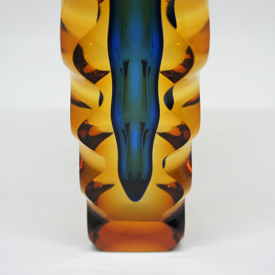 60’s Czech “EXBOR” Amber & Blue Glass Vase by “Oldrich Lipsky”