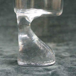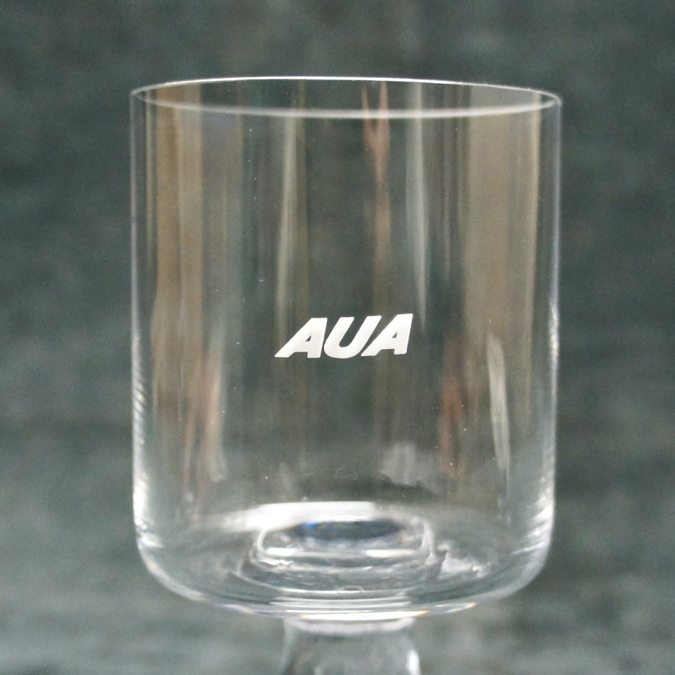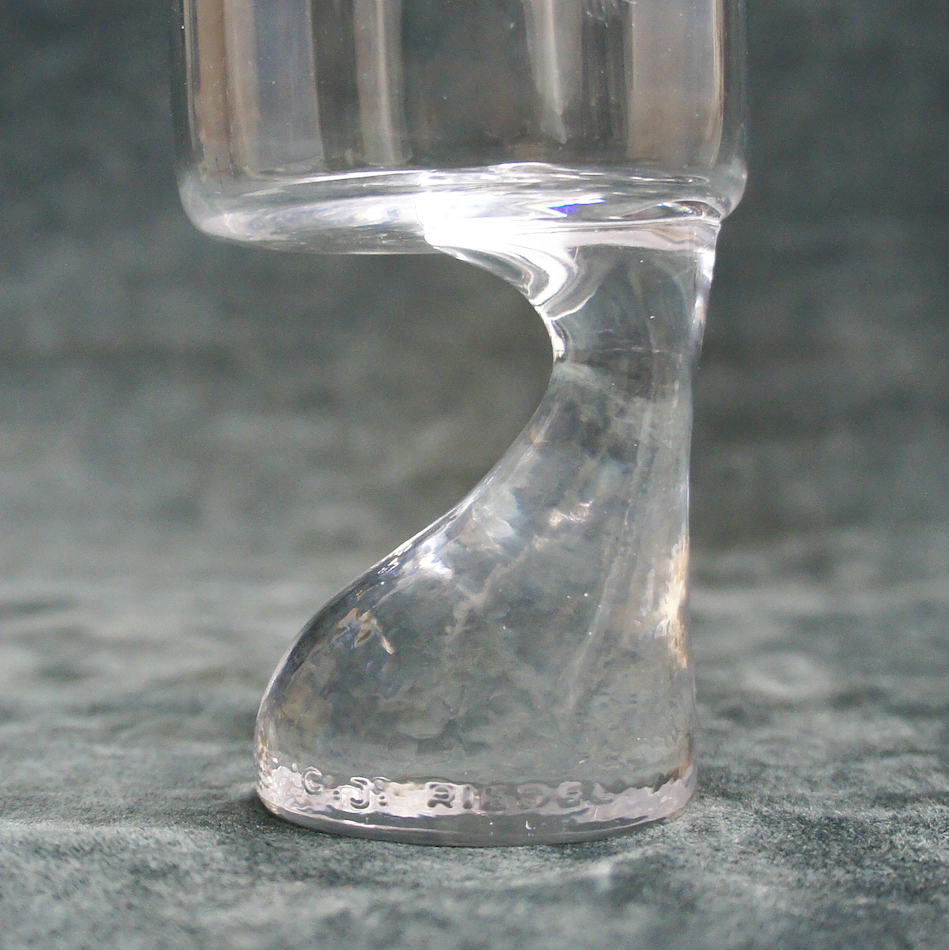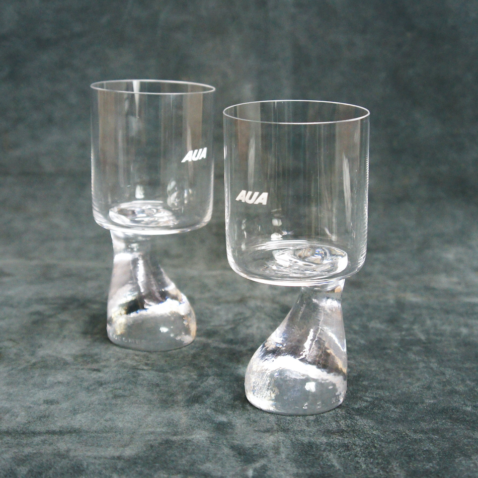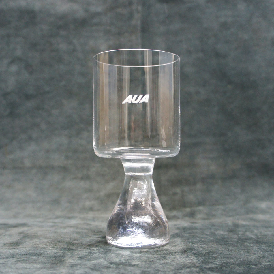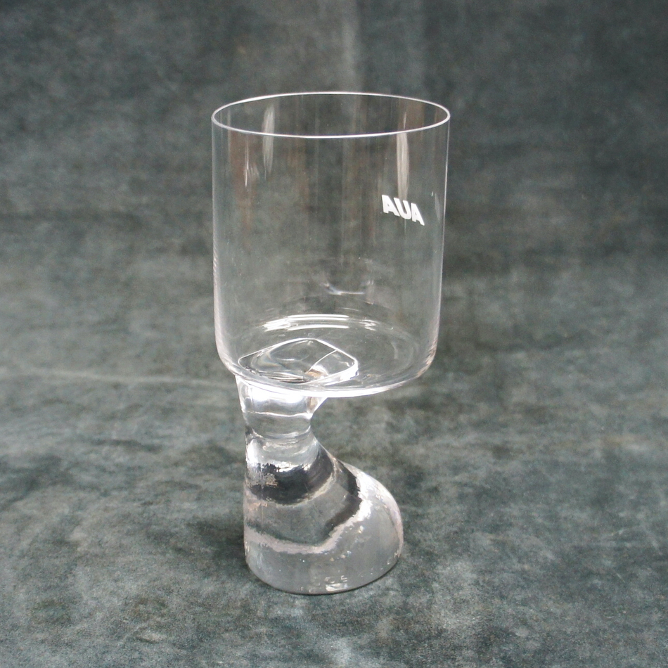 しかも、当アイテムは製造元のオーストリア “C.J. Riedel /リーデル”社が、自国 “オーストリア航空 (AUA) “のファーストクラス機内サービス用にサンドブラストでロゴを入れて製造した特注品。ステムベースにエンボスで刻まれた”C.J. Riedel”と”Joe Colombo”両者の文字と合わせてトリプルネームが揃ったとても珍しい非売アイテムです。